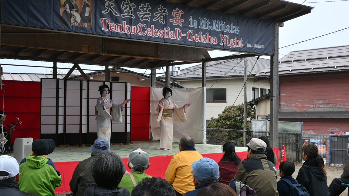 訪れた11月12日には、八王子芸者さんの「天空芸者舞踊」が鳥居前広場のステージで開催されていて、多くの方が演舞を楽しんでいました。