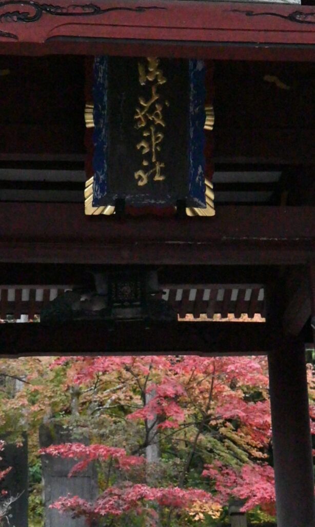 お手水を済ませ、鳥居をくぐると随身門が見えます。随身門越しに見える紅葉は参道の階段の疲れが和らぐほどの美しさでした。