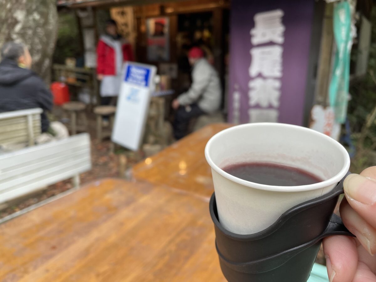 長尾茶屋さんの一番人気メニューは、なんとホットワイン!ソムリエの資格を有する店主は「天空のソムリエ」の異名を持ち、山の茶屋でありながらワインや日本酒を販売しているのが特徴のなんとも珍しいお茶屋さん。山頂でいただくホットワインがとても美味しいと登山後の楽しみになっている方が多いそうです。