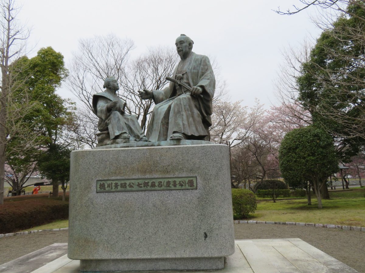 黄門像広場の徳川斉昭公・七郎麻呂(慶喜公)像