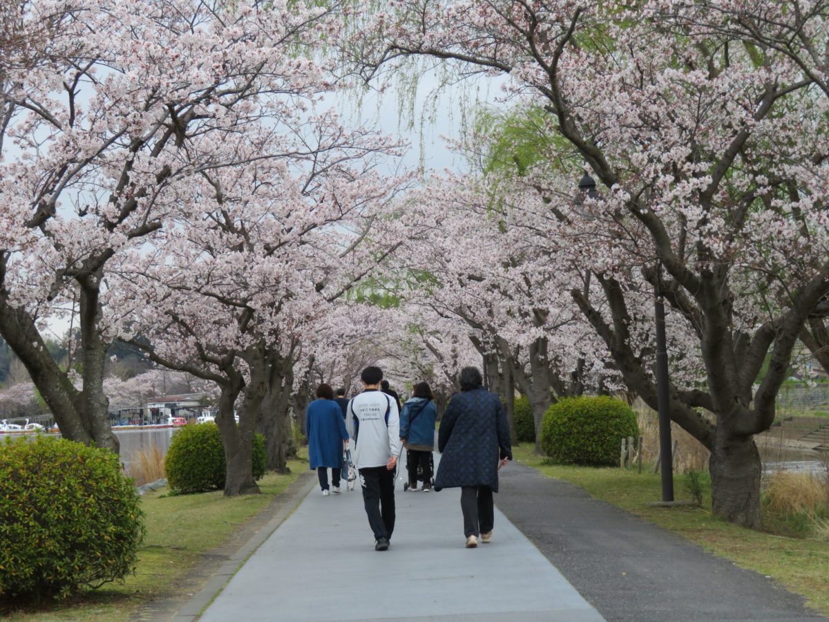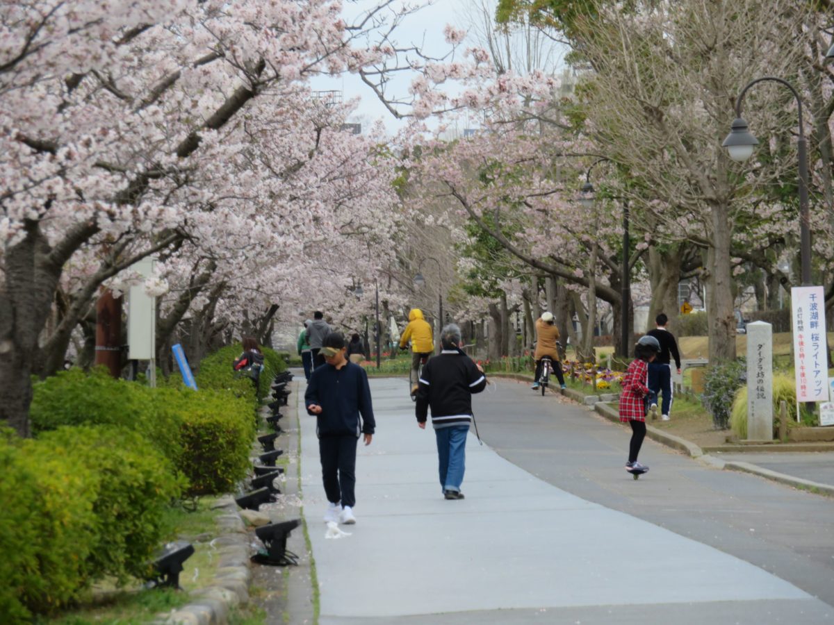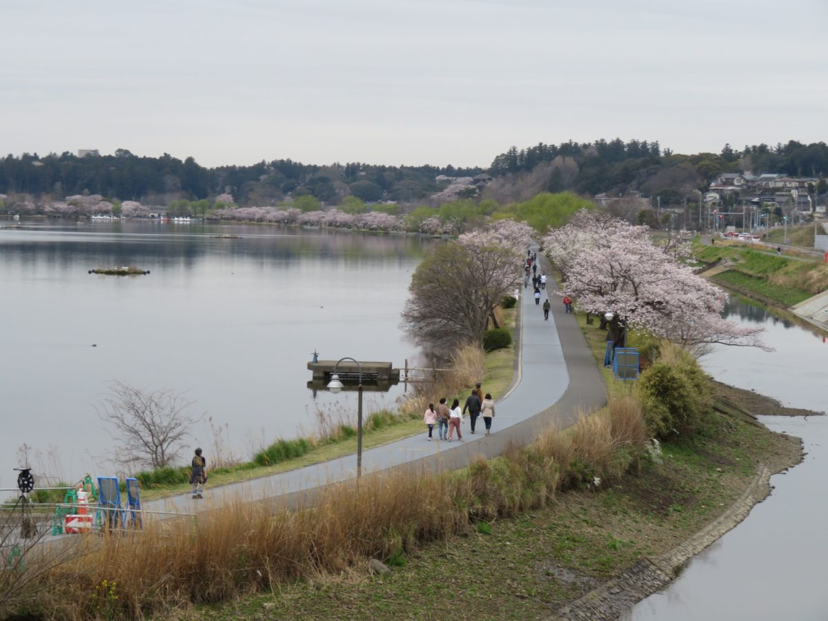 千波湖の遊歩道から水戸駅まで続く桜並木