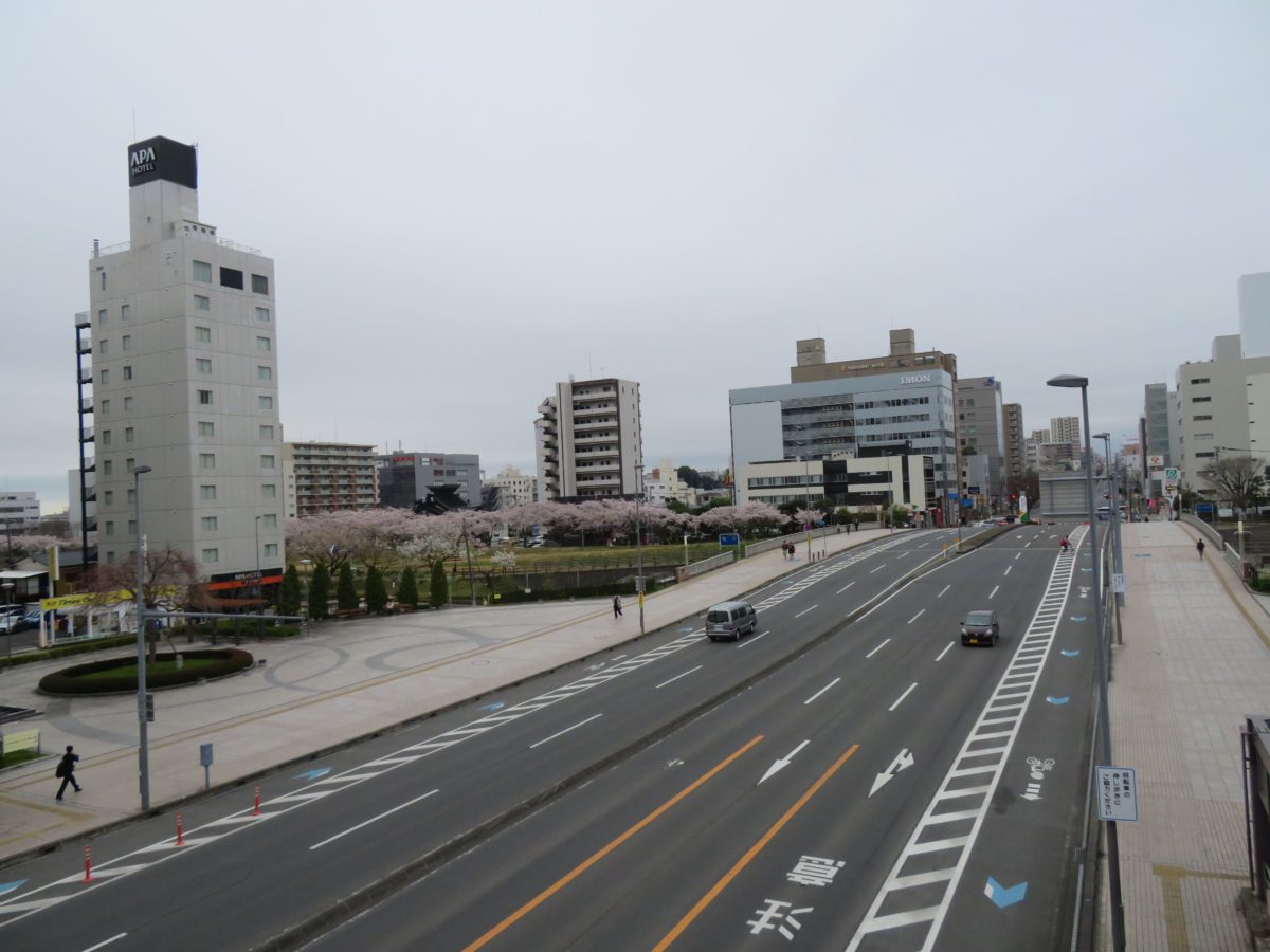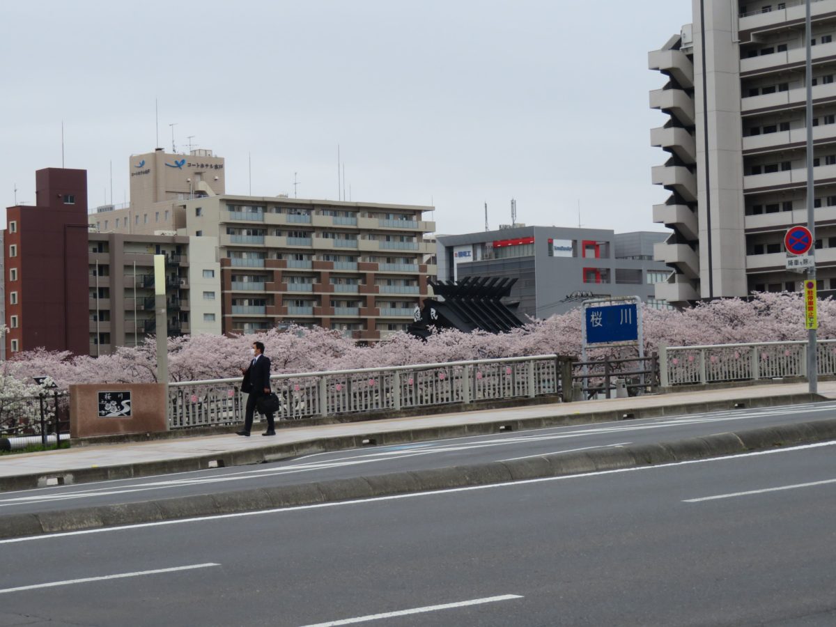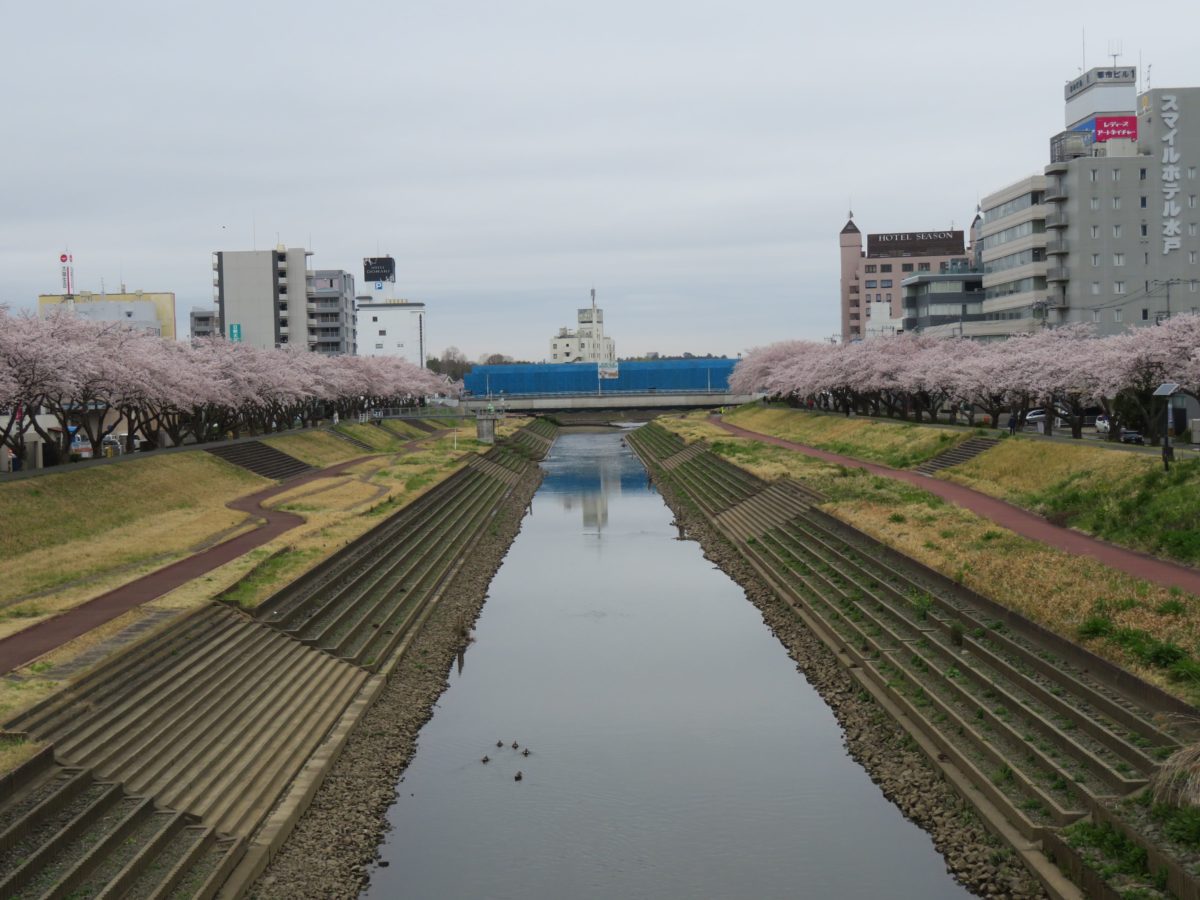千波湖から千波大橋を越えるとJR水戸駅南口に向かって桜川が流れています。川の両岸にも桜並木が続き、水戸駅まで桜の花を楽しむことができます。