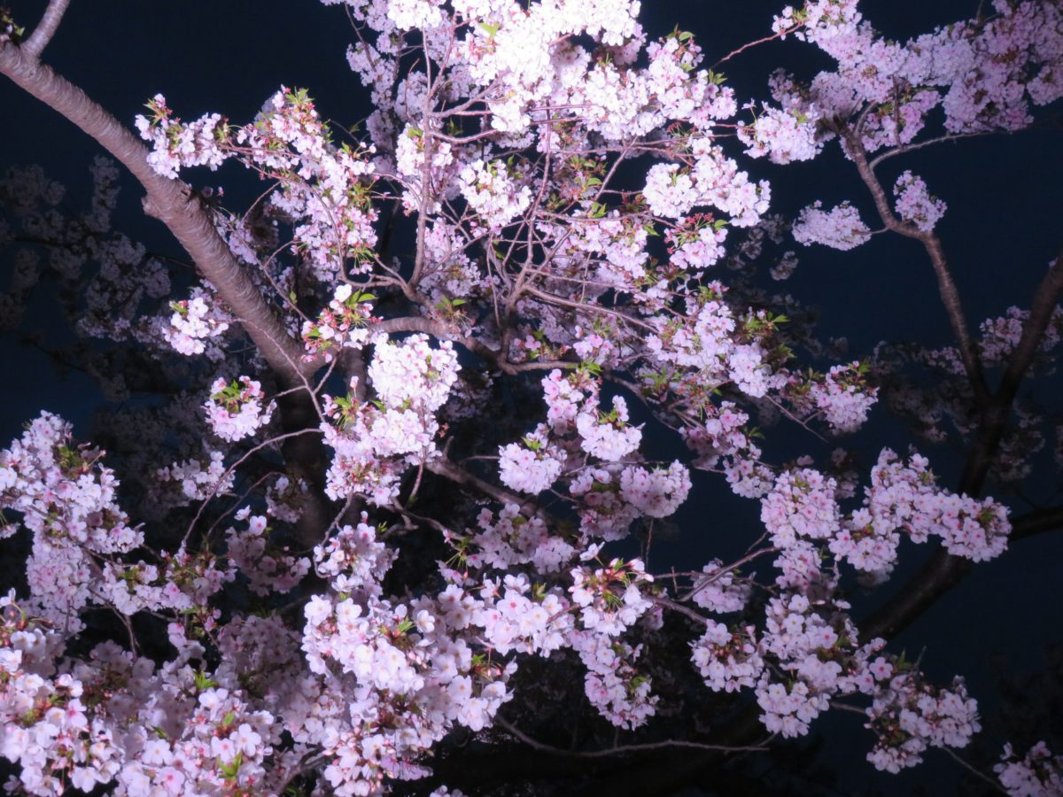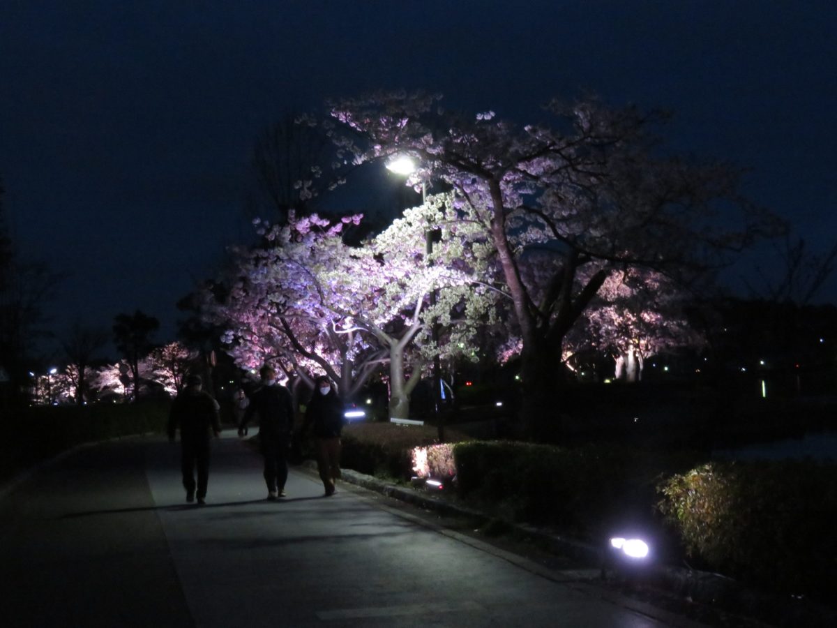 夜間に桜を彩るライト