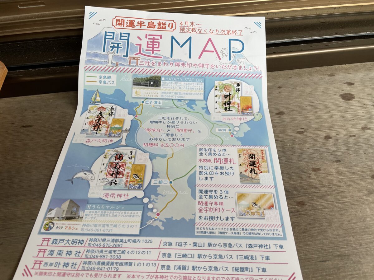 三浦半島は、神奈川県南東部にある半島です。都心からのアクセスがよく、日帰りでも豊富な自然と歴史的文化を楽しむことができます。また、新鮮な海産物や農産物、ご当地グルメなども楽しめる人気スポットです。そんな三浦半島にある神社三社で2021年4月29日(祝)から「開運半島詣り」が始まりました!三社は、横須賀市浦賀にある「西岸叶神社」・三浦市三崎にある「海南神社」・葉山町にある「森戸大明神」。この三社はいずれも「龍神」をお祀りしており、今回「龍神」をあしらった特別御朱印・開運守が頒布され、三社全て揃うと各社にて開運祈祷をした木製紙の開運札や開運守専用の金字刻印ケースがいただけます。期間限定、数量限定の開運詣り。今回、4月29日の初日に開運詣りをしてきましたので、レポートでお知らせいたします!