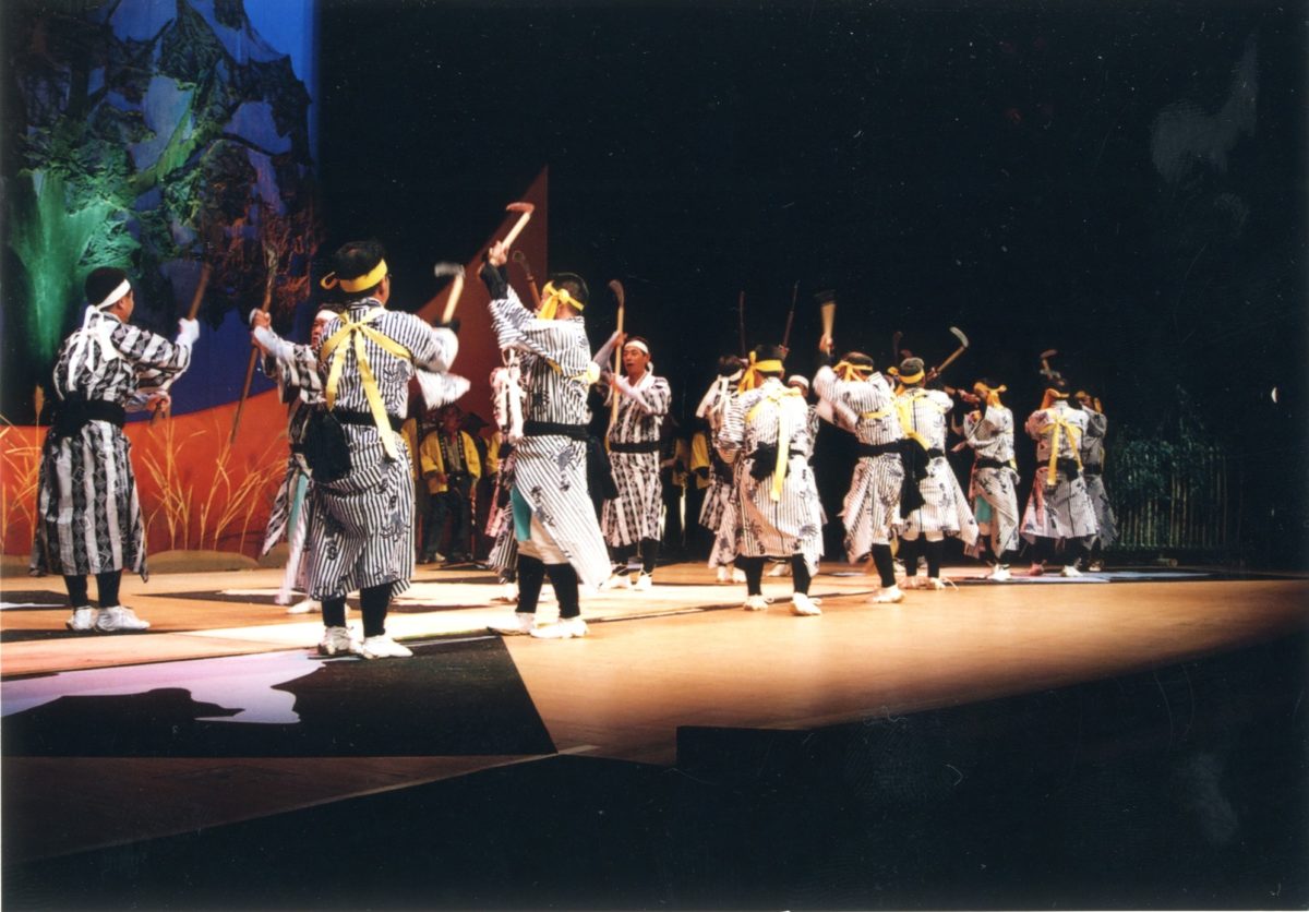 『苦難を乗り越え見事本懐を遂げるくだりを、太鼓・撥・唄とが一体になって演じます。勇壮な雰囲気をお楽しみください。屋外で演じる際は、松明に点火するんですよ!』