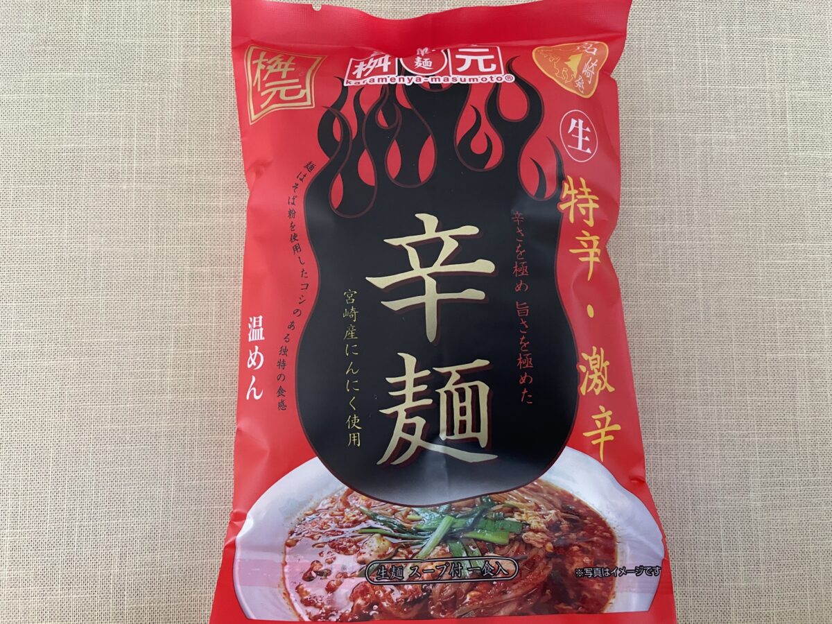 今回は、「辛麺」の元祖「桝元」の生麵パック(590円税込)を、「新宿みやざき館KONNE」で購入しました! 実食したのは「特辛・激辛 辛麺」赤いパッケージが特徴です。