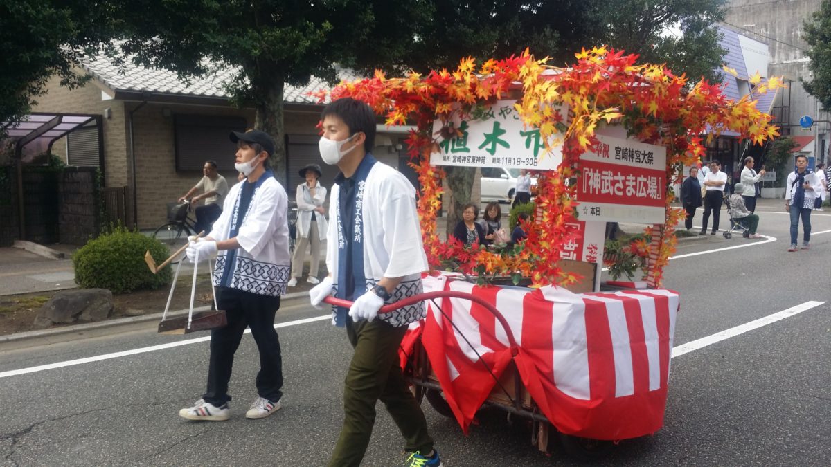 行列は、令和元年10月26日(土)宮崎神宮を出発して宮崎市の目抜き通りを御旅所に向かい、翌27日(日)には逆のコースで神宮に戻る行程で沿道を賑わせました。