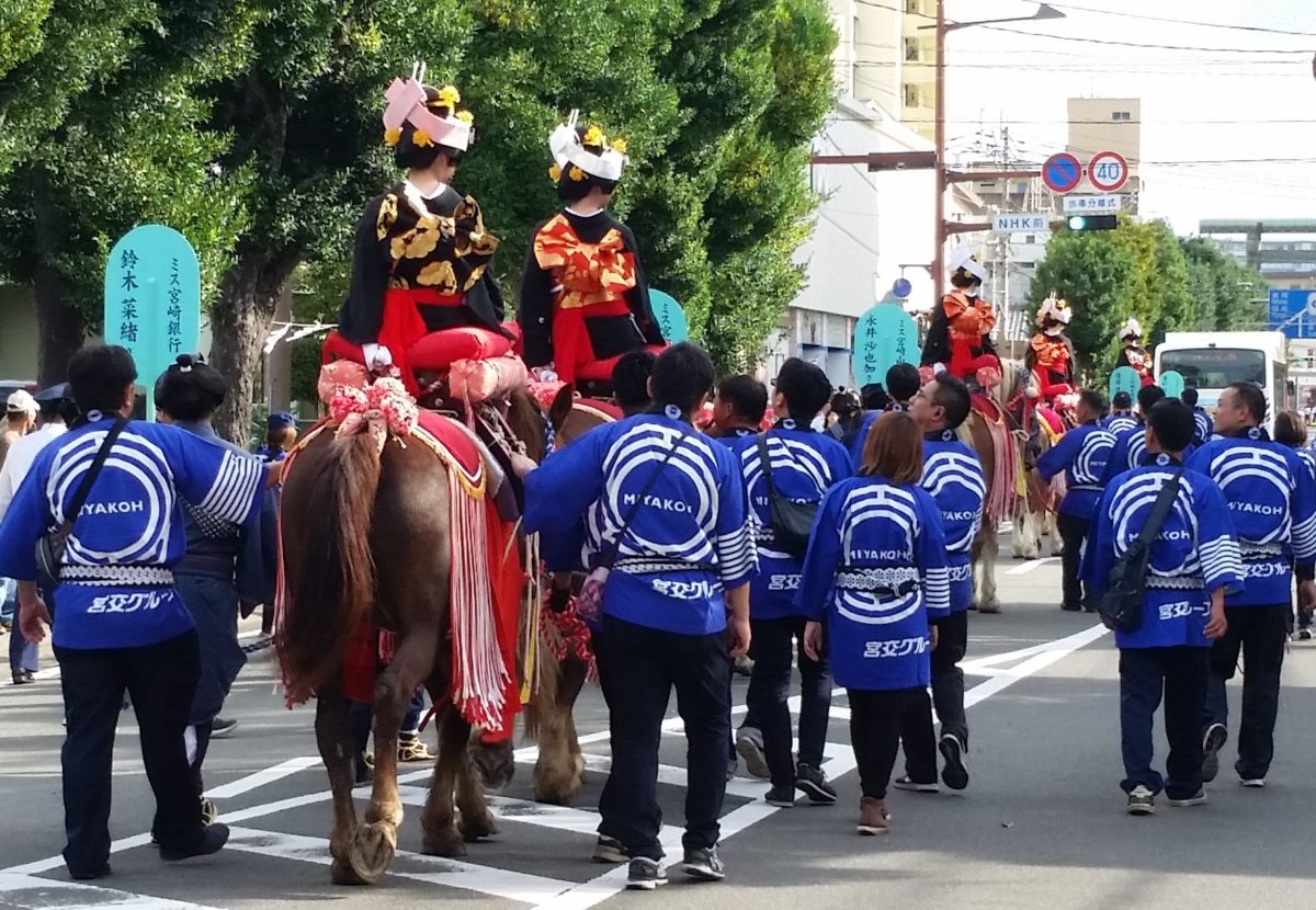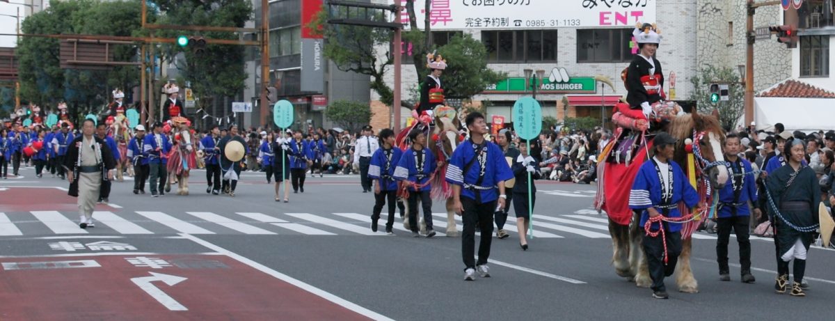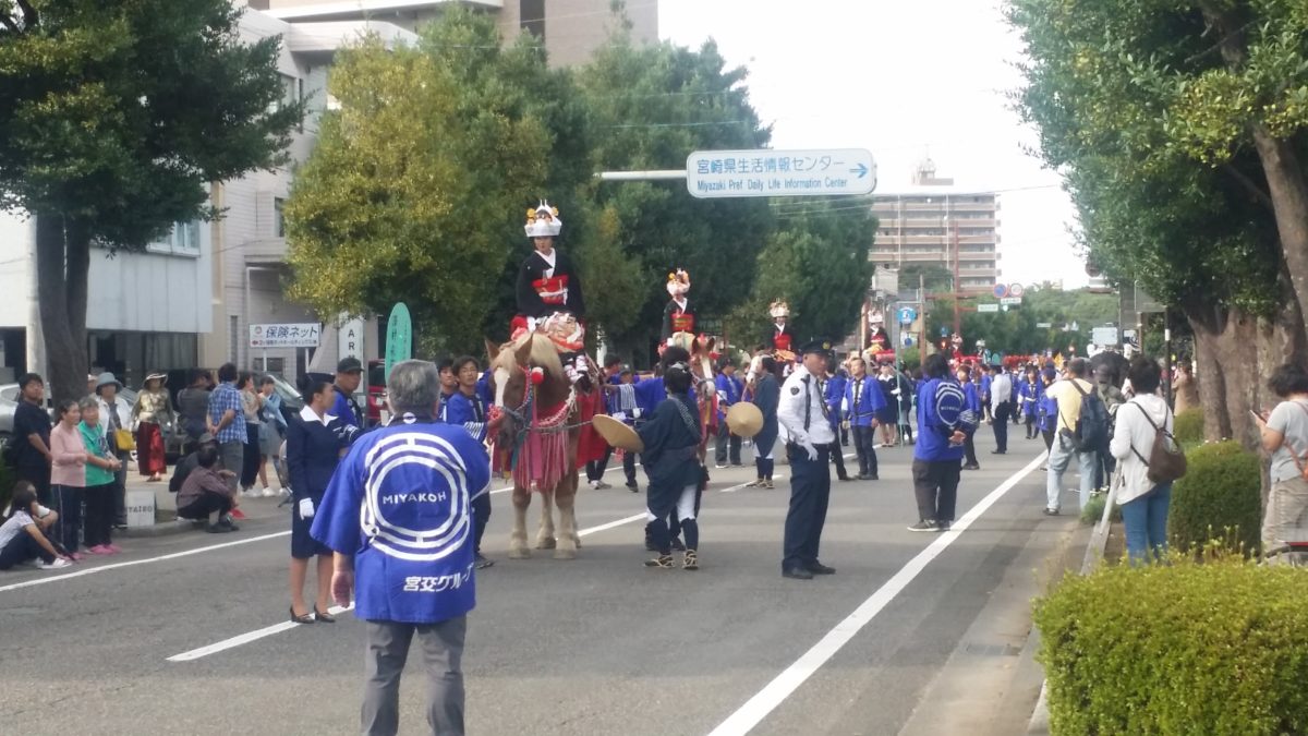行列は、令和元年10月26日(土)宮崎神宮を出発して宮崎市の目抜き通りを御旅所に向かい、翌27日(日)には逆のコースで神宮に戻る行程で沿道を賑わせました。
