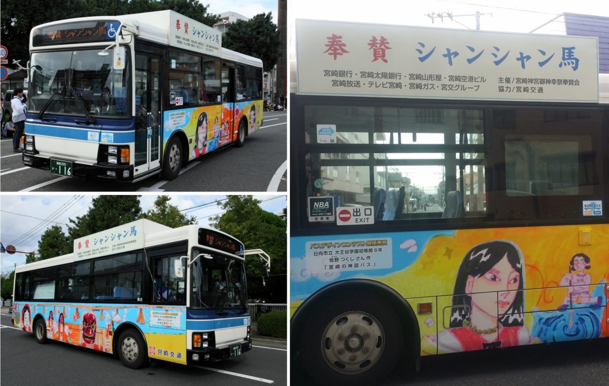 宮崎交通バス(左2枚押川写真事務所提供)と8企業名