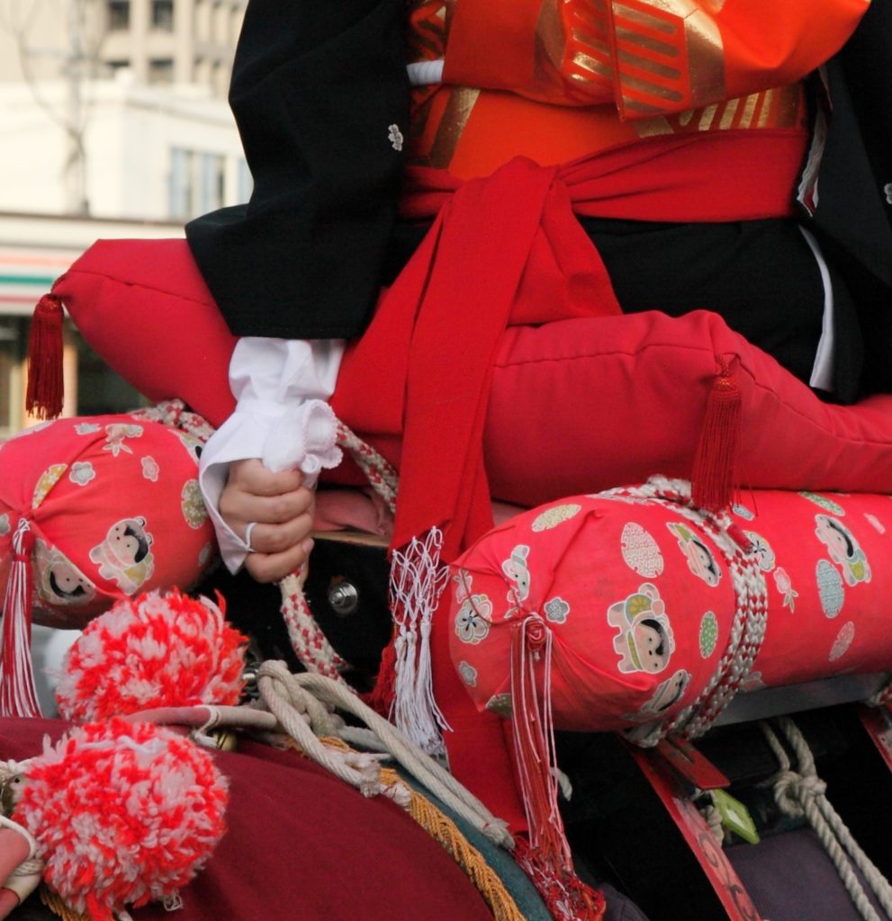 「祭り、楽しい!」行列は、無事お旅処に到着。スタッフや馬に挨拶をすると、すぐにバスで着付け会場に戻り、また明日に備えました。澤村さんの紐を握りしめていた腕はしびれ、クロスさせたままの足はつりそう、又川さんの草鞋を履いた足はヒリヒリ痛みましたが、それ以上に感激した興奮する気持ちを胸に、家に帰るとすぐに寝たのだそうです。