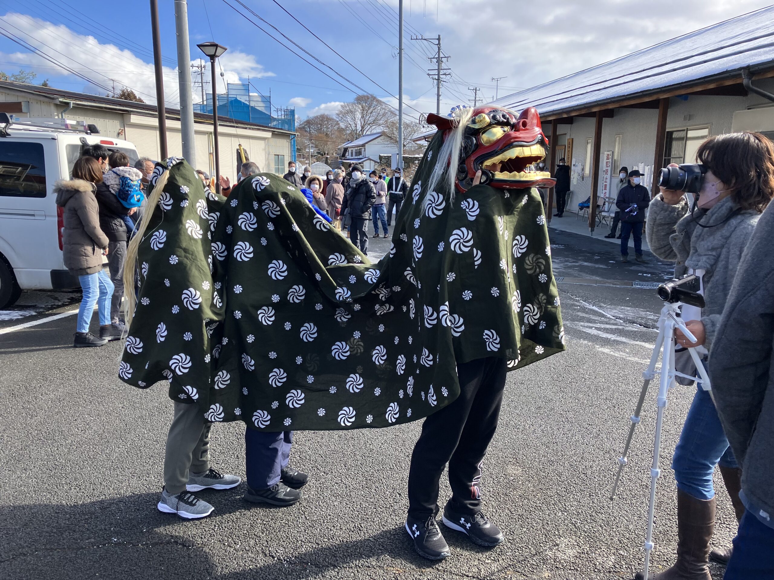 その時に獅子舞の話も伺ってみると、新型コロナウイルスの流行を機に、家を一軒一軒門付けして回るのではなく、地域の主な拠点を回る形に変えたらしい。その結果、地域に住む方々がお正月の2日に集う場もできたようだ。他にも子どもたちが獅子舞に参加したくなるにはどうすればよいかを考え、様々な工夫をされていてとても驚いた。