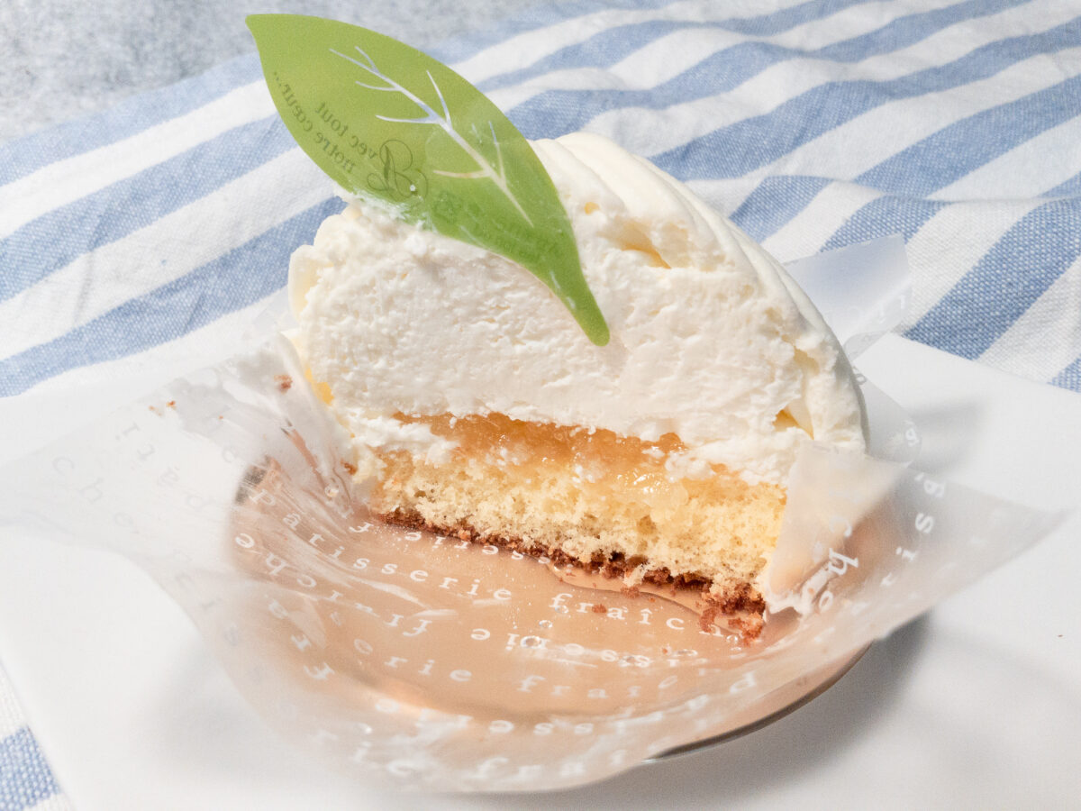 真っ白で清々しい、レモンチーズモンブラン。モダンで可愛らしいかたちをしていますね。