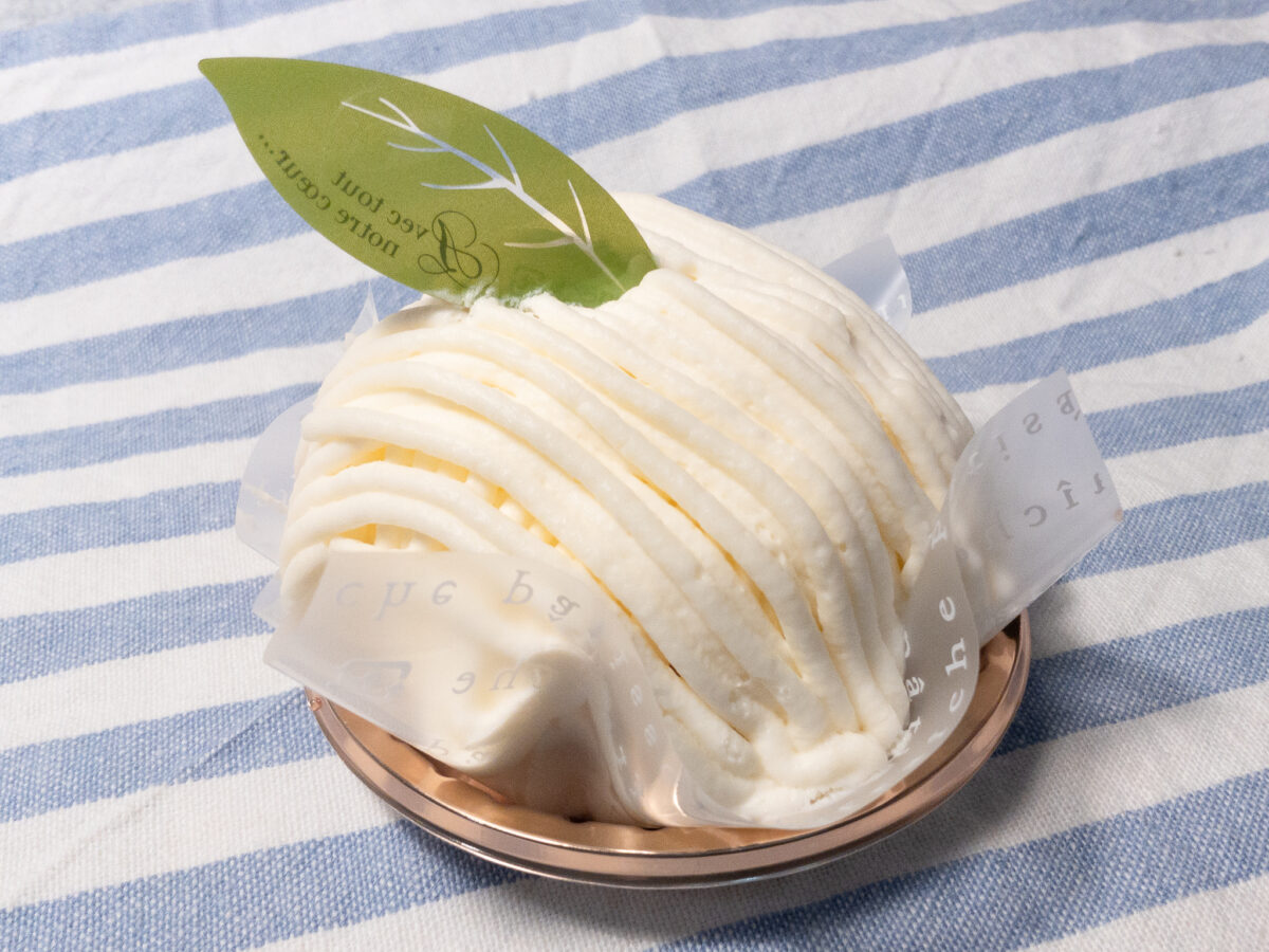 真っ白で清々しい、レモンチーズモンブラン。モダンで可愛らしいかたちをしていますね。