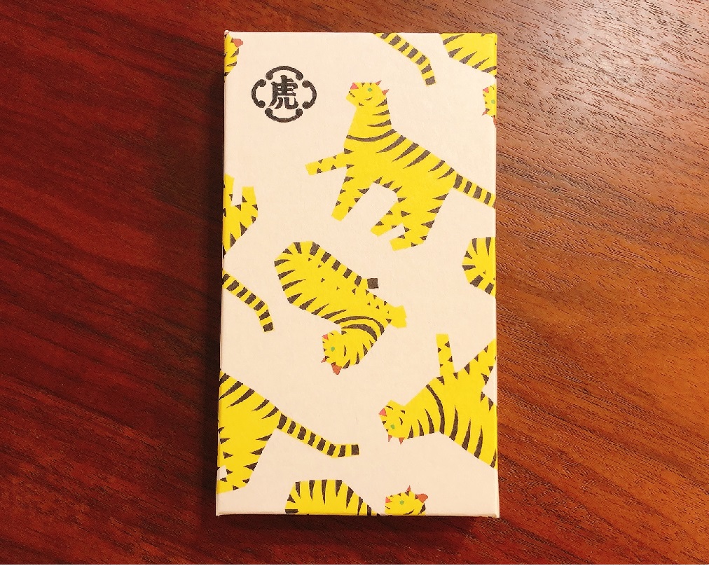 今回ご紹介するのは「小型羊羹『夜の梅』」(5本入 税込1620円)。とらやのロゴと、張り子のようなトラがあしらわれた和紙のパッケージがかわいい!パッケージの大きさは縦15センチ、横9センチで、華やかなパッケージでもあまり大きすぎずちょっとした感じが上品でこなれています。