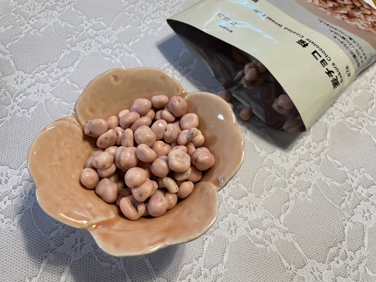 子どものころに食べて懐かしの麦チョコも桜味が販売されていました。「麦チョコ桜 190円(税込)」袋を開封した瞬間に、ふんわり桜のにおいが香りました。