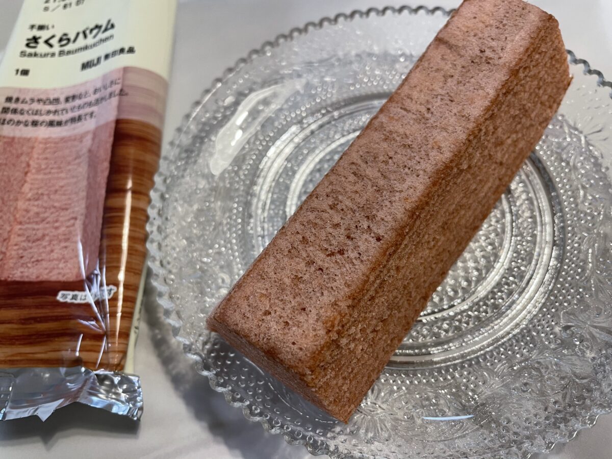 無印良品のお菓子部門で、いつも人気の不揃いバウム。季節限定で「不揃いさくらバウム 150円(税込)」が登場!