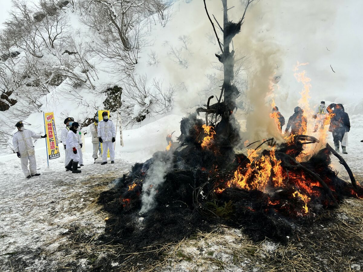 毎年1月15日は、新潟は松之山温泉の奇祭、ムコ投げ・スミ塗りじゃ。新婚の婿をお堂のから雪の斜面にぶん投げ、その後、どんと焼きで焼いた炭で顔を塗り合うゾ。略奪結婚で娘を取られた腹いせが由来と言われておる。略奪から始まる祭りもあるということじゃのう。 pic.twitter.com/NM6SQEMPID