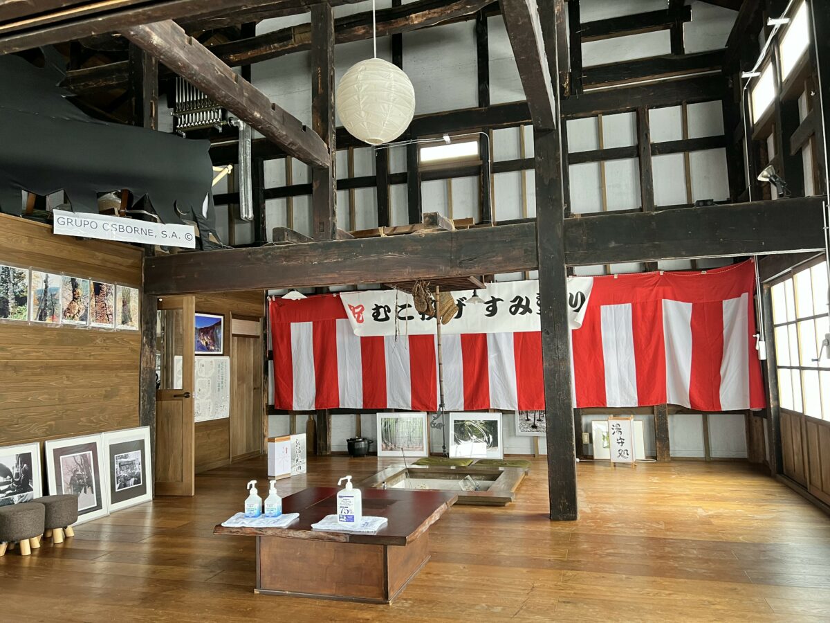 酒を飲みながら、新婚のおむこ様をみんなで祝う会場となる「地炉」。温泉街の一番奥にある、築約100年の古民家を移築した体験施設で、普段も様々なイベントスペースとして利用されているようです。「金田一少年の事件簿」であれば、ここで誰かが殺される展開になる場所でしょう。