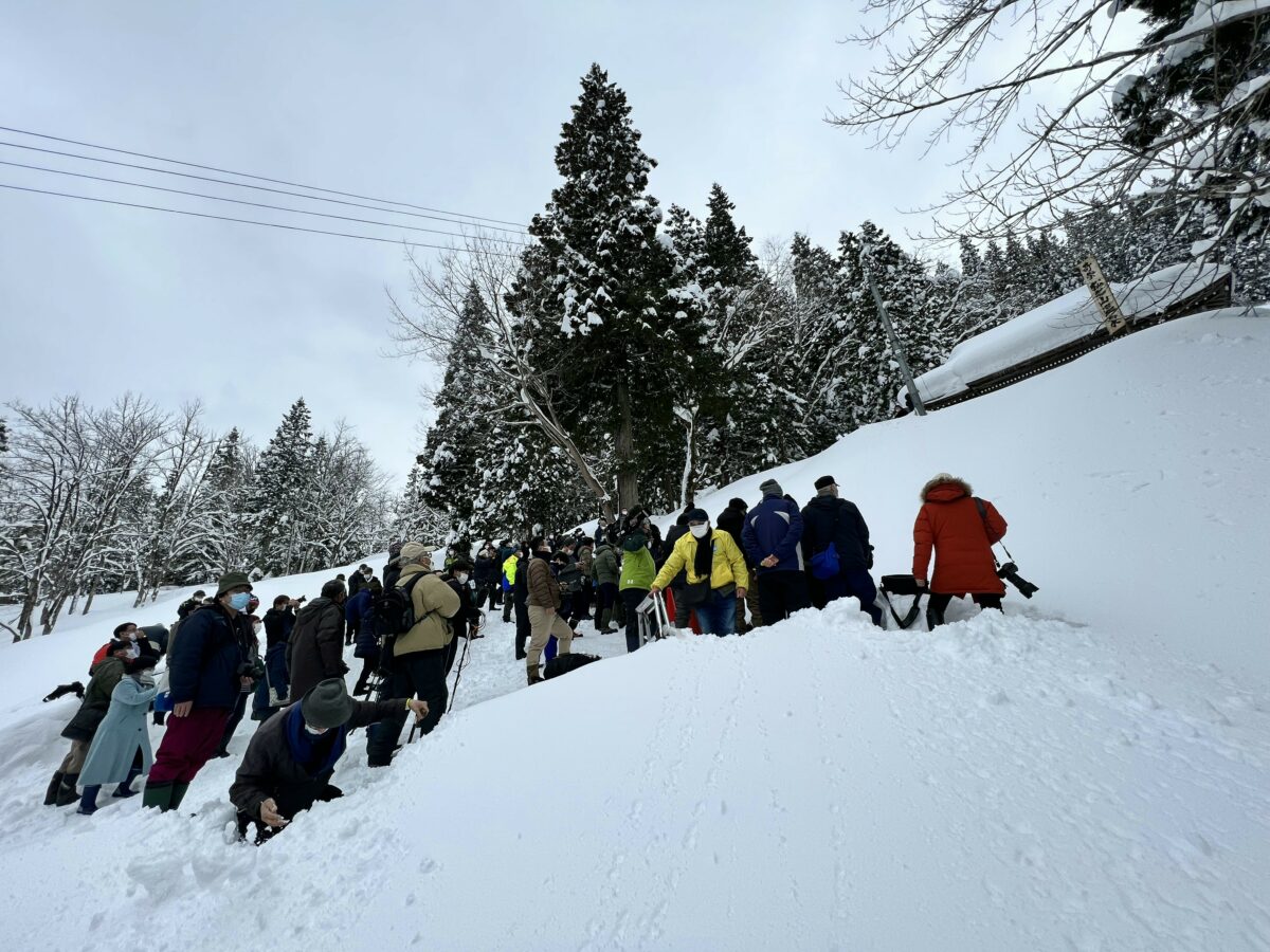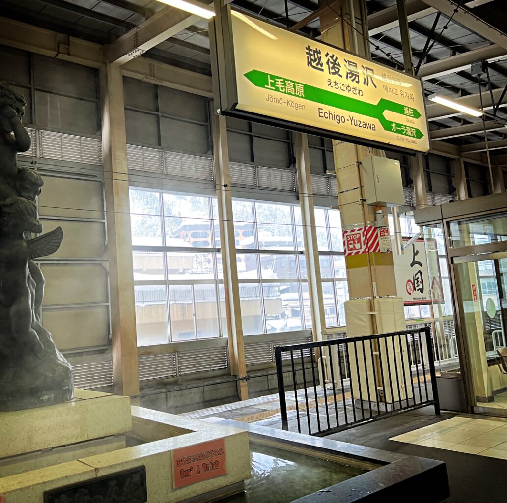 東京から上越新幹線で一時間強。越後湯沢の駅に着きました。さらに朝9時の雪国豪雪ライナーに乗って、松之山温泉へと向かいます。