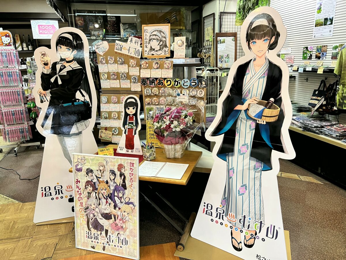 温泉街の土産物屋「十一屋商店」には、巷で何かと話題の温泉むすめの松之山棚美さんが飾られていました。誕生日がむこ投げと同じ1月15日らしく(設定の芸が細かい)、ファンの方から花束を始めとした誕生日プレゼントが届き、祭壇(キャラのグッズや写真を一か所に集積し、飾りつけた場所)が形成されていました。何と直接、この奥越後の秘湯まで貢ぎ物を直接奉納しに来る方もいました(強火オタクの行動力!もはや神なき温泉地の新世代の神やで)。