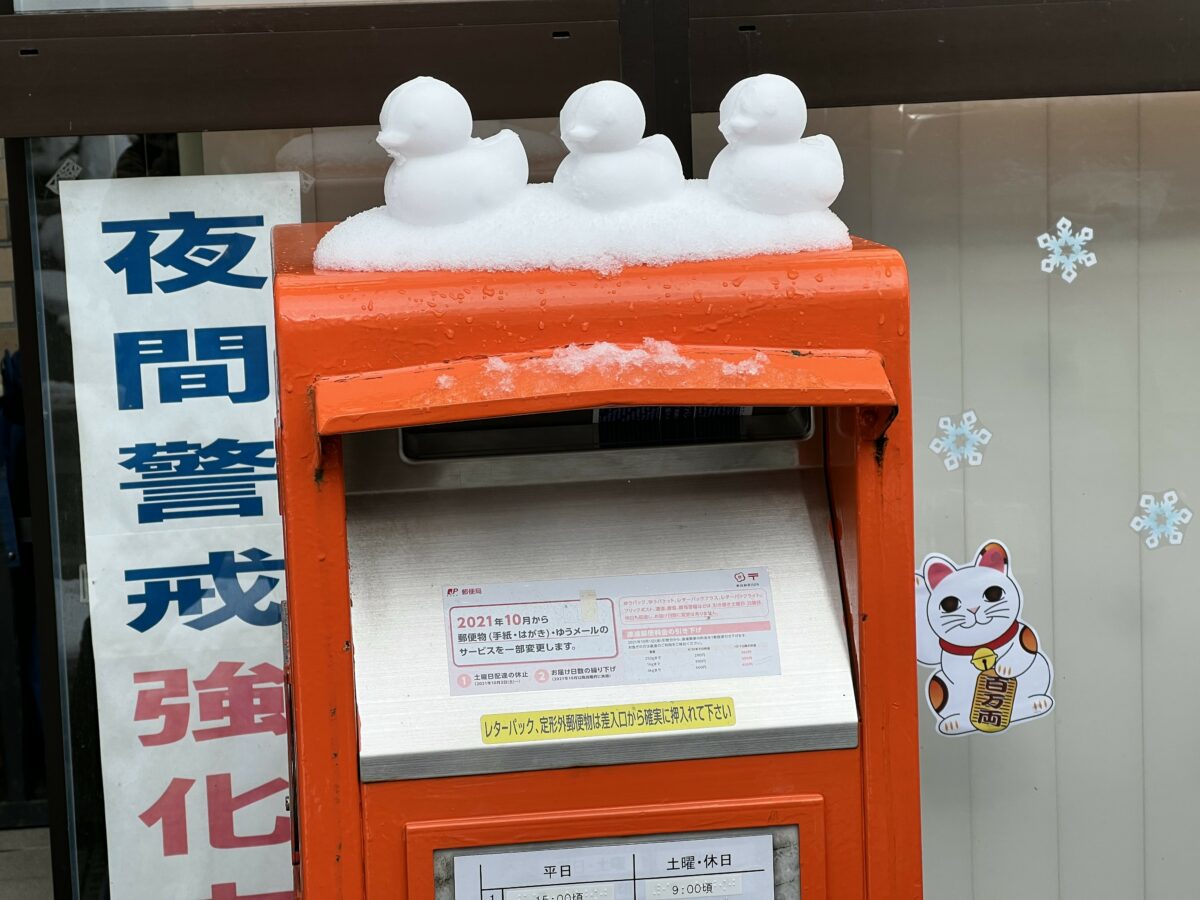 隠れミッキーならぬ隠れアヒル。雪国ならではの遊び心が楽しい。