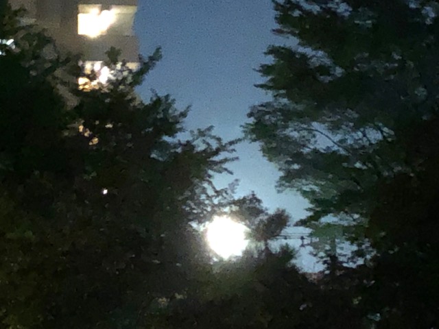 「月が出てきましたよ」と教えてくださる方がいるので、空をみると大きなお月様が登場!中秋の名月当日は、悪天候で全く見られなかったとか。この日はとても大きなお月様!