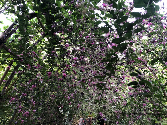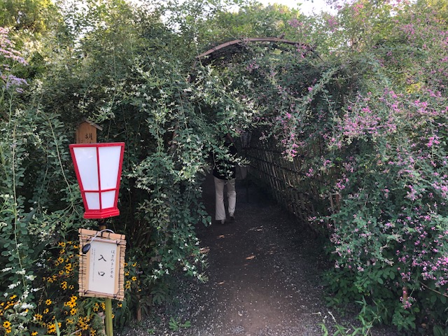 散策していて目に留まったのは、秋の七草のひとつでもある萩祭り。向島百花園の名物である萩のトンネルをついついくぐり抜けたくなりますね。
