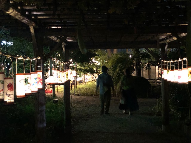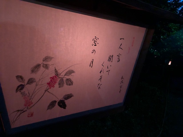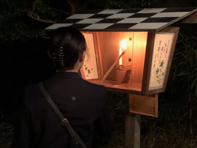 外に出てまた園内を散策しているうちに、足元に灯籠が置かれたり、月見への期待が高まっていきます。