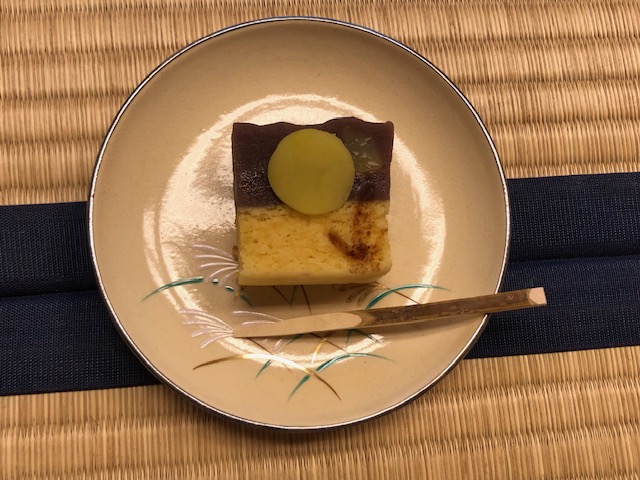 いざ、お抹茶とお茶菓子をいただきます。すすきのお皿に置かれたお茶菓子は、とてもかわいらしいビジュアルで、味もおいしい。点てていただいたお抹茶も素晴らしく、皆さん満足そうでした。