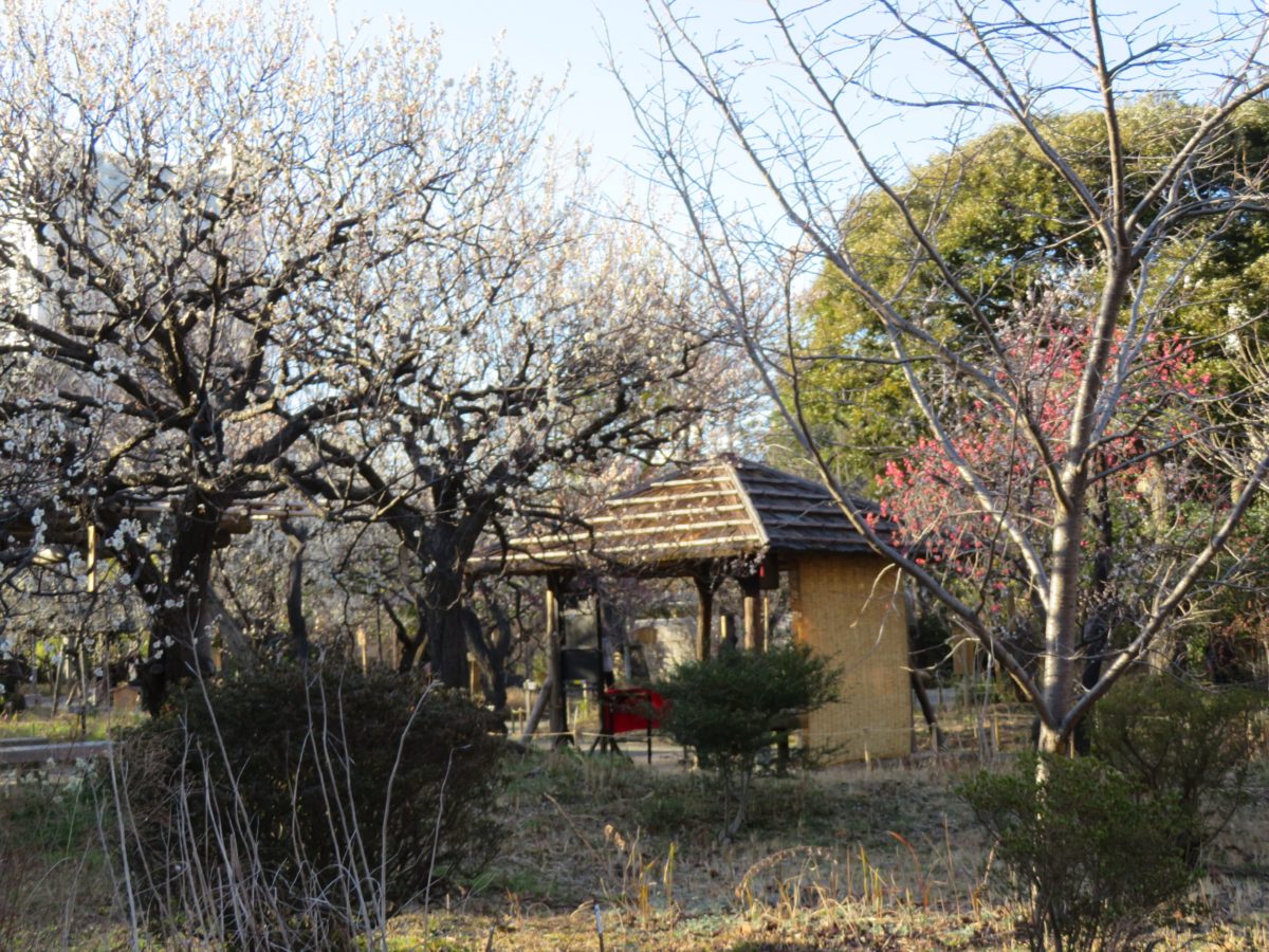 広場から少し奥に進んだ藤棚があり、その周辺に梅が植栽されています。