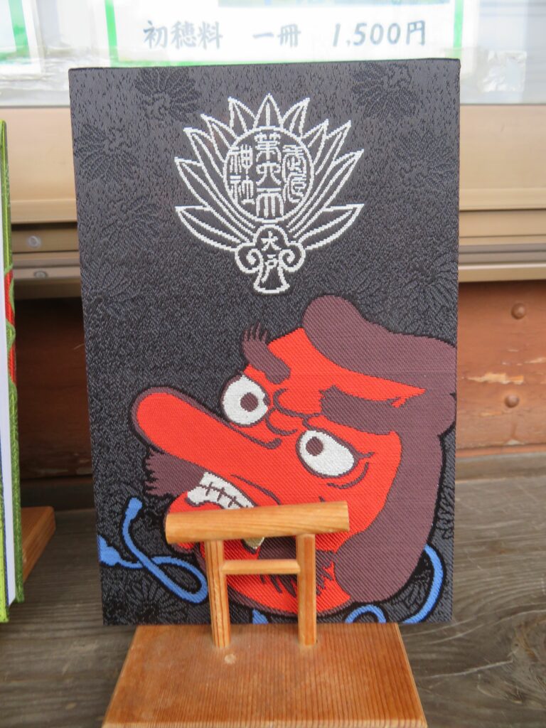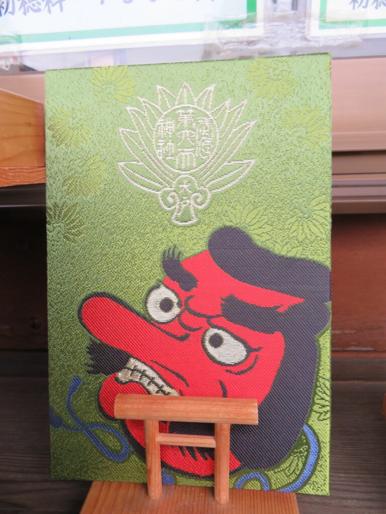 御朱印ばかりでなく、御朱印帳や御朱印帳袋にもオリジナリティーが溢れます。表裏に神社の眷属とされる大天狗と烏天狗がデザインされているのです。