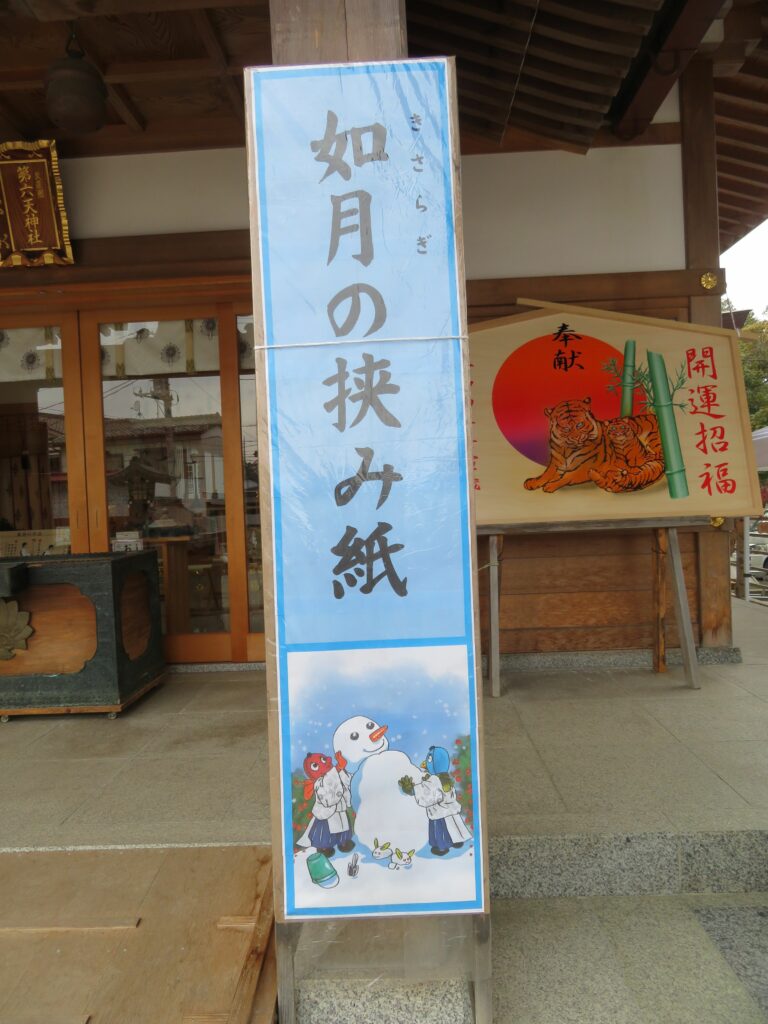 社殿の前に掲示される挟み紙の案内