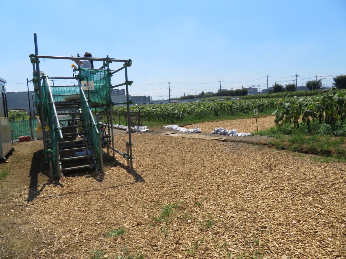 会場の東端には見晴台が設置されています。見晴台からは広大な敷地に広がるひまわりの園を一望することができます。