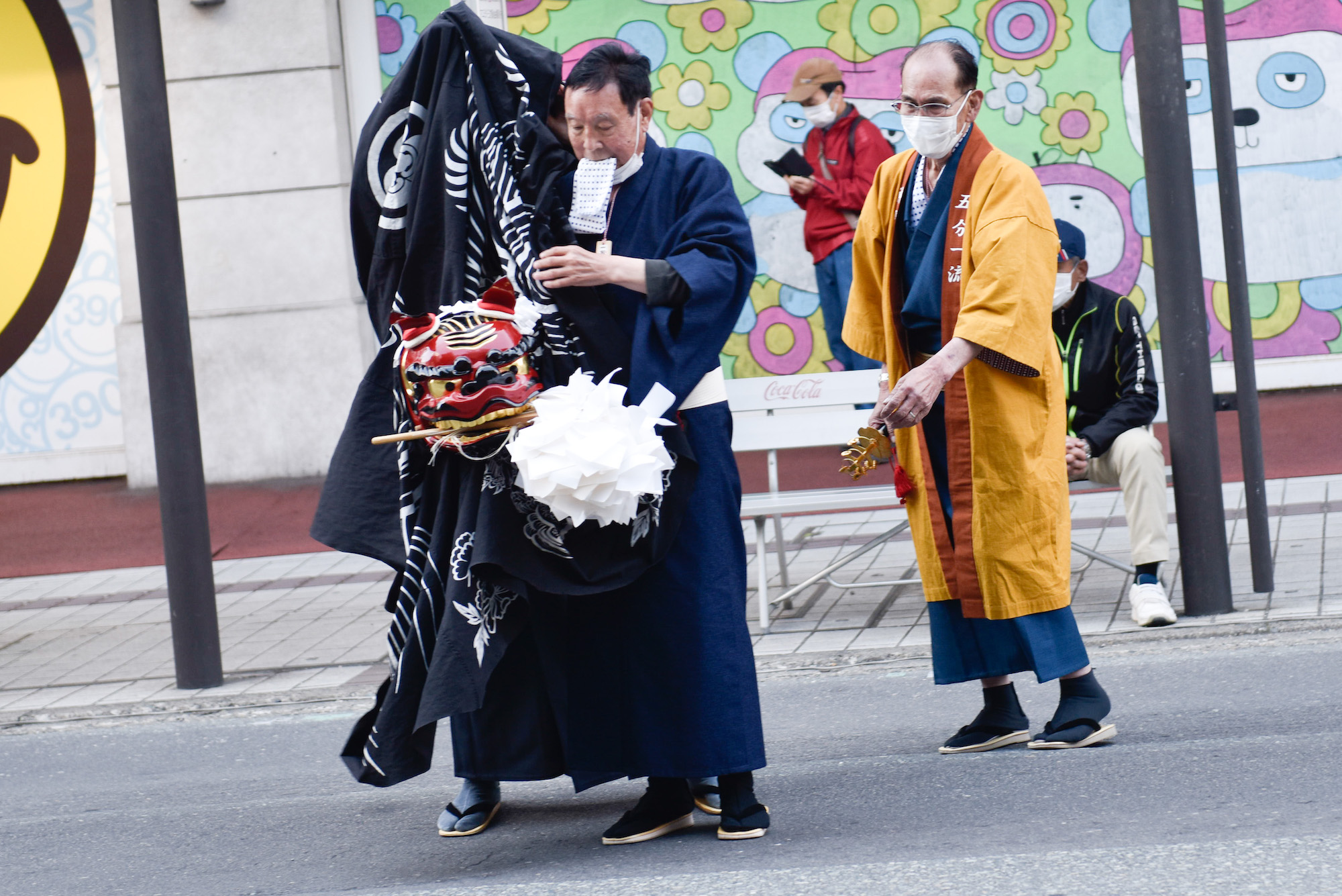 演舞終了後は、獅子頭が沿道の観客たちを噛んで歩く姿も多く見られた。喜んで獅子に噛んでもらい、無病息災や厄払いなどを願っているようだった。