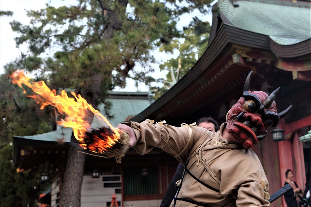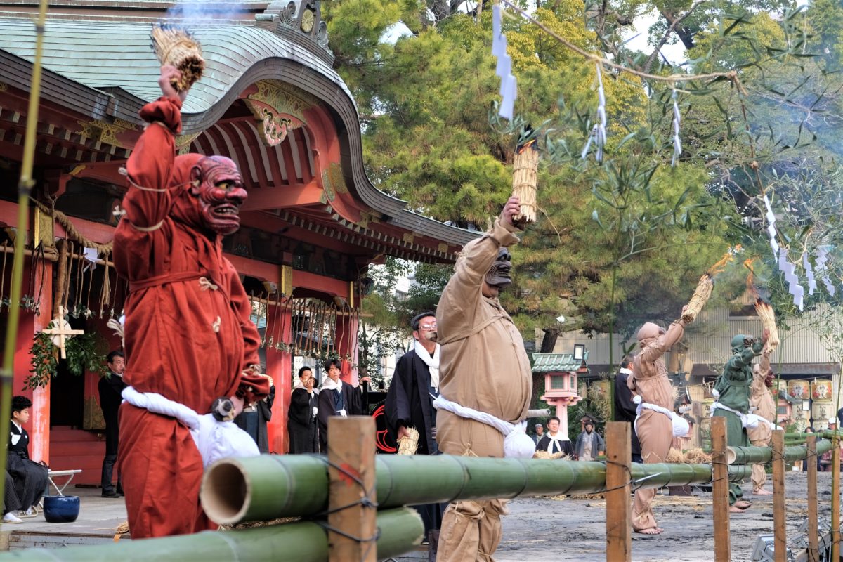 一方、神戸三大神社として知られる長田神社の「古式追儺式」は、七匹の鬼が神々のお使いとして