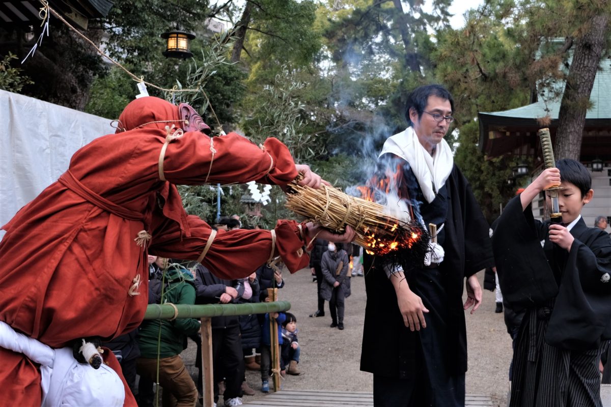 「太刀持ち」は最初から最後まで紋付き袴で演じ続けるのですが、世話役たちの助けが必要不可欠です。世代を越えた地域の結びつき、受け継がれてきたものを大切にすること、守り続けること。このオマツリにはこれから生きていく上で大切なことがすべてつまっています。長田神社の「古式追儺式」は、オマツリ好きや歴史愛好家はもちろん、子供たちにこそ見て肌で感じてもらいたい神事なのです。