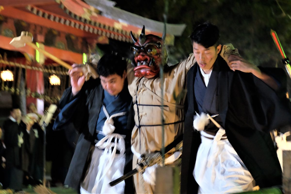 地元住民のために厄を祓い、一年間地域を見守り続ける鬼たちには、どこか憎めない風貌も含めて優しさを感じます。「古式追儺式」もまた地元に対する優しさに包まれています。「古式追儺式」は貴重な伝統行事ですが、決して堅苦しくて退屈な行事ではありません。実はすごく親しみやすく、ついつい応援したくなるオマツリなのです。