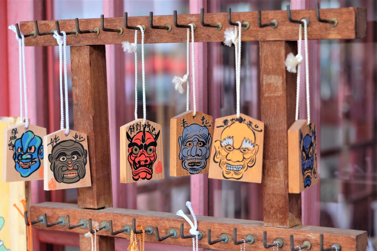 行事の合間には縁起物を買うのも一興です。鬼のお守りや面、餅花、福豆、厄除け餅、ミニ松明など盛り沢山。