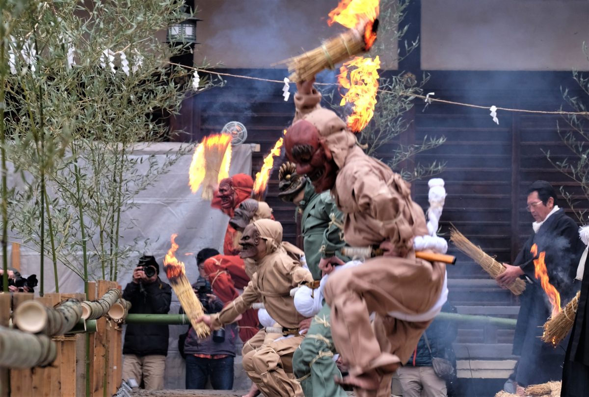 7匹の鬼が勇壮に松明を振り、古式ゆかしく舞う!