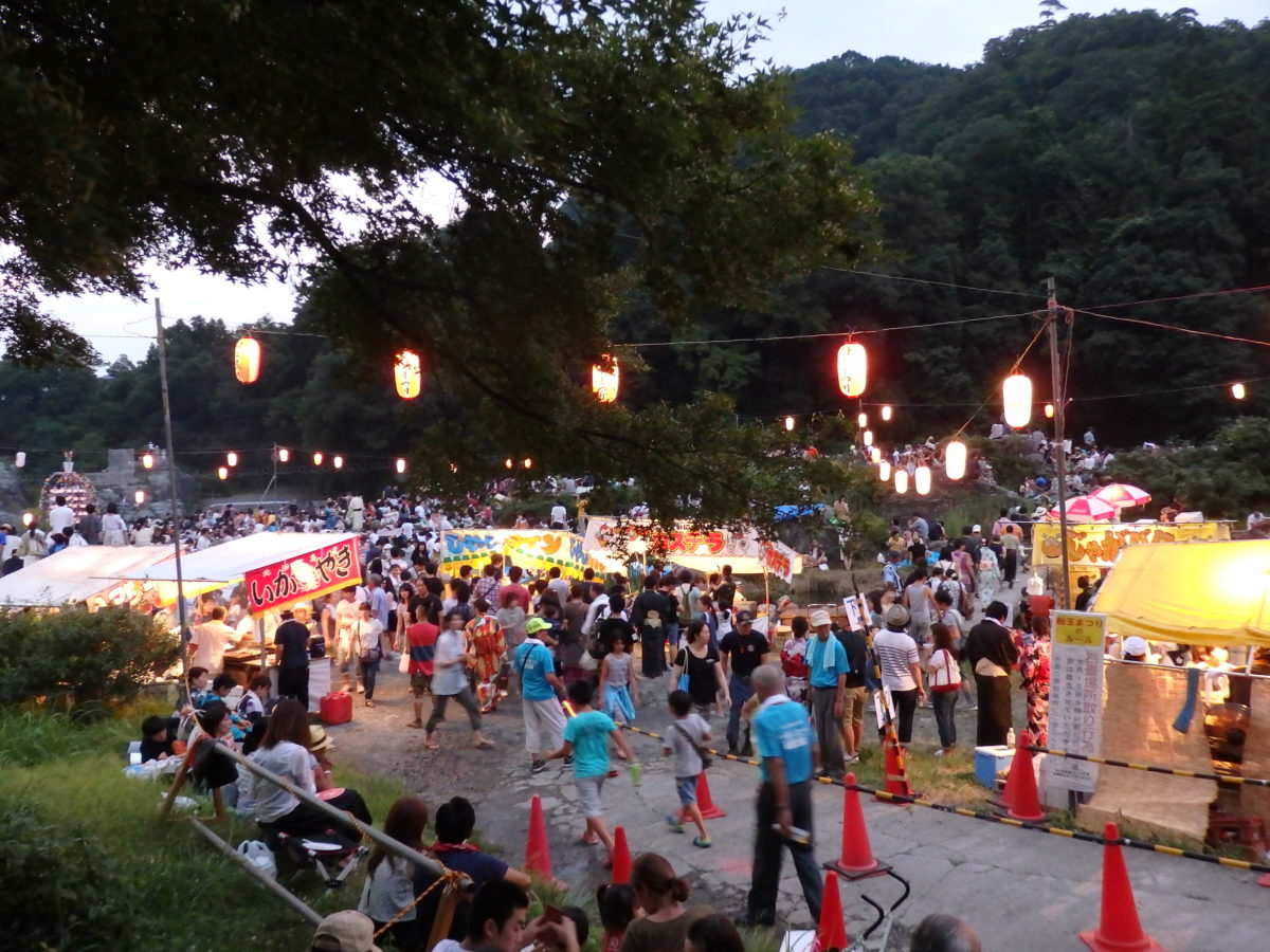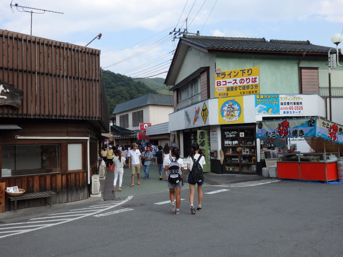 「長瀞船玉まつり」は、毎年8月15日に岩畳の河原で開催されています。まつりがスタートするのは17時ですが、何時間も前から次々に人が集まってきます。長瀞駅に電車が到着する度に、大勢の人が押し出されていきます。長瀞駅と岩畳の河原を繋ぐ岩畳通り商店街は、まつりの会場に向かう人の波が途絶えることはありません。