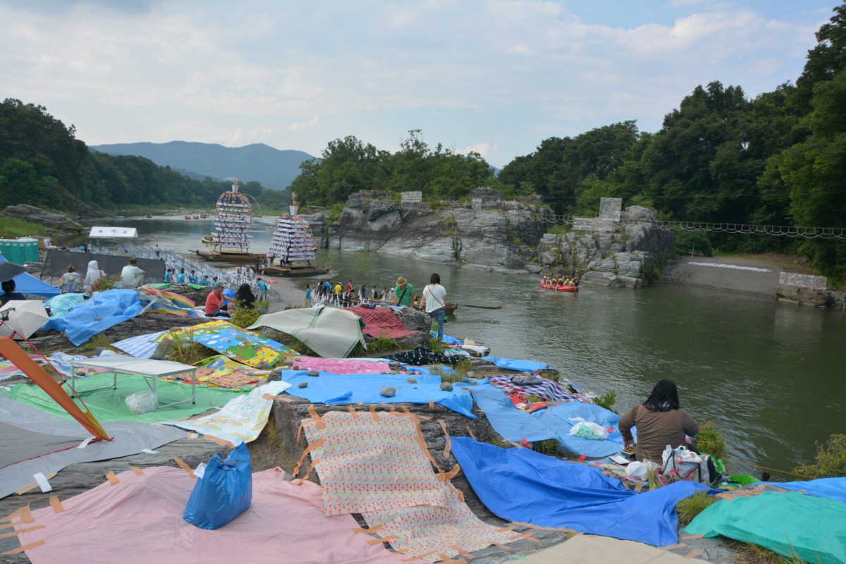 岩畳の川岸の平坦な場所には特別観覧席が設けられ、1口5000円の協賛費を払えば特等席が約束されます。特別観覧席は数に限りがありますが、岩場は無料で開放されており午前中から場所とりが始まります。