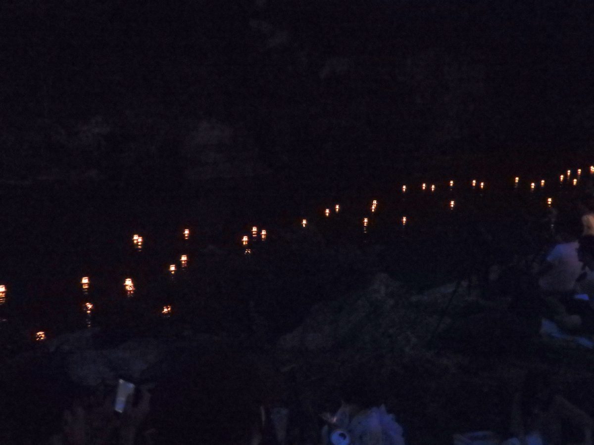 5.川面に幻想的な灯りの帯を作る灯籠流し