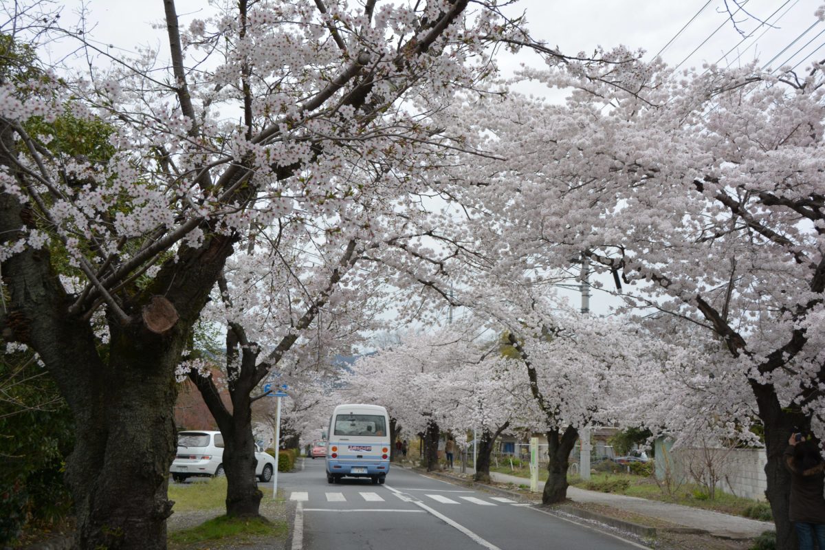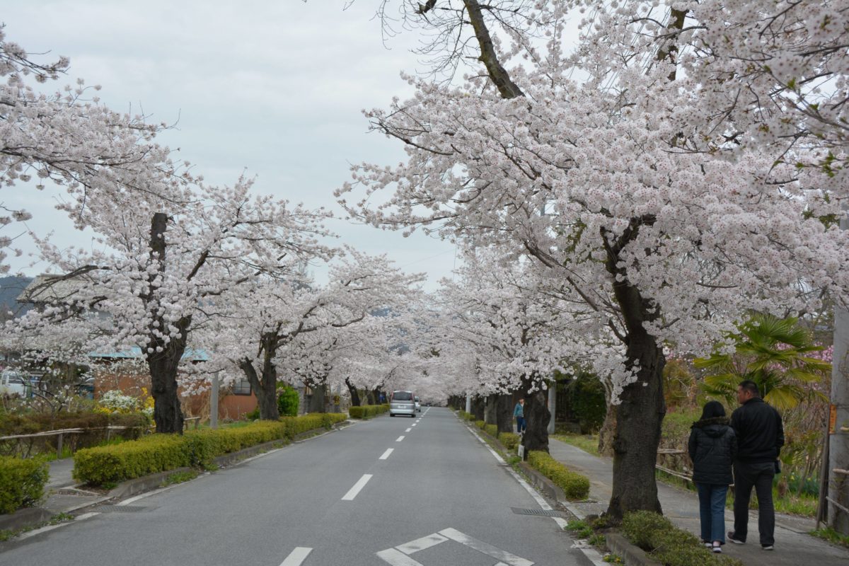 約4キロの桜のトンネルに変身する桜通り