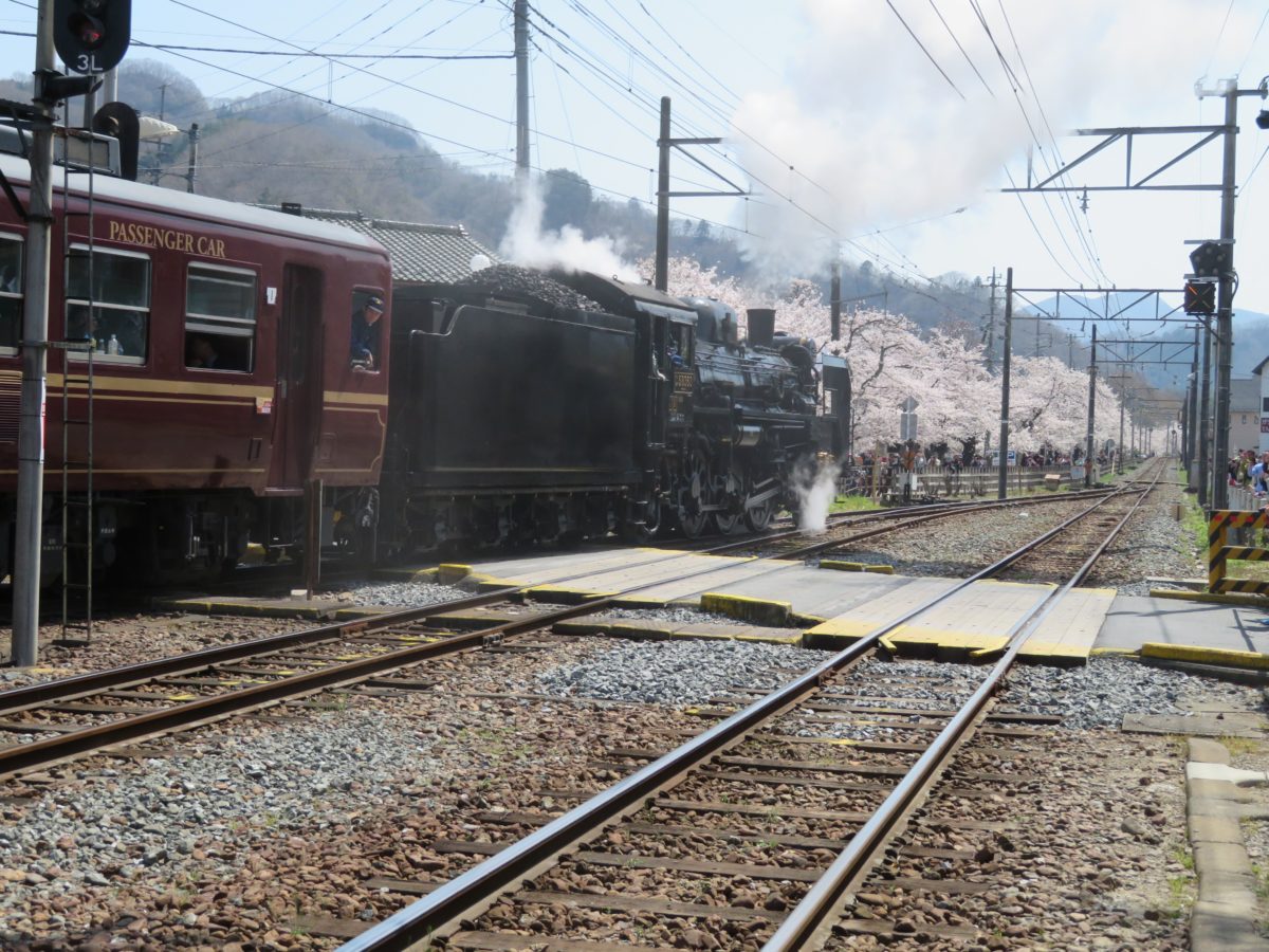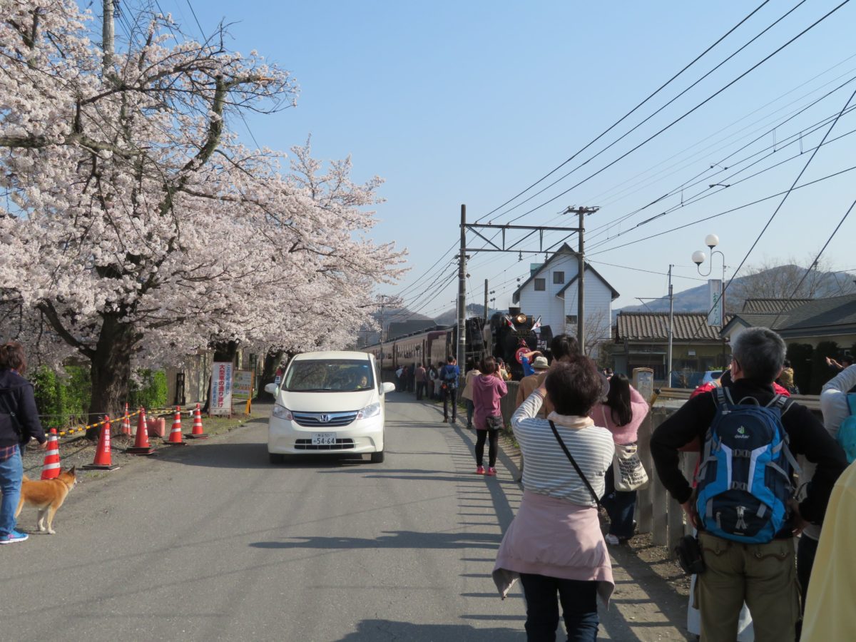 南桜通りの桜並木を走り抜けるSL