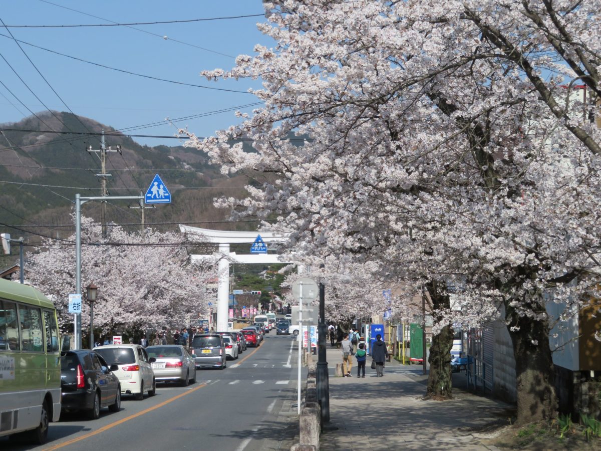 「長瀞桜まつり」の最終盤を飾る通り抜けの桜