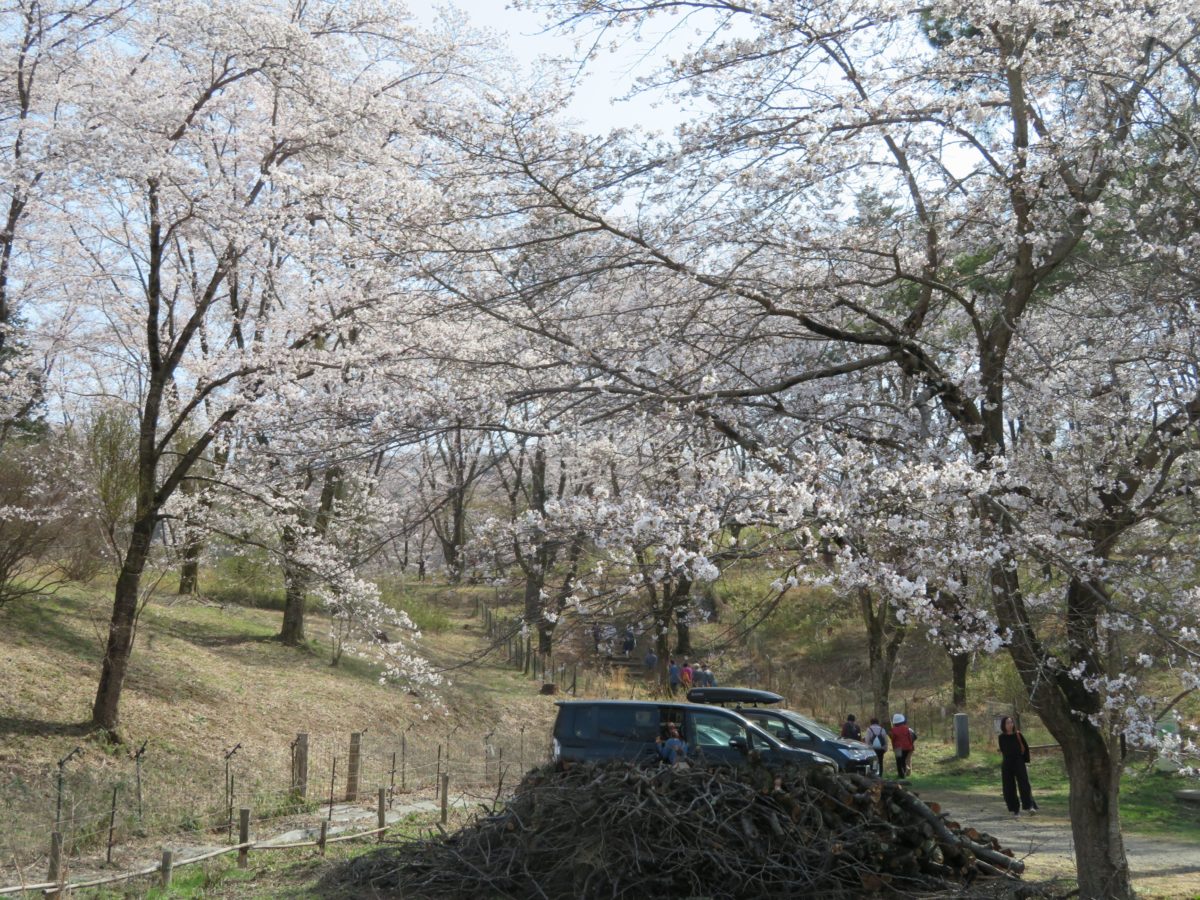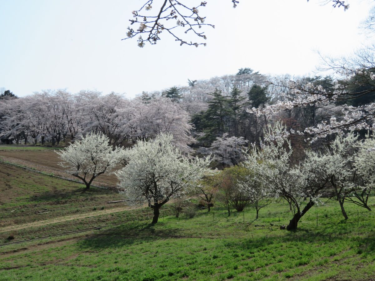 宝登山神社参道の西で桜の花に覆われる野土山