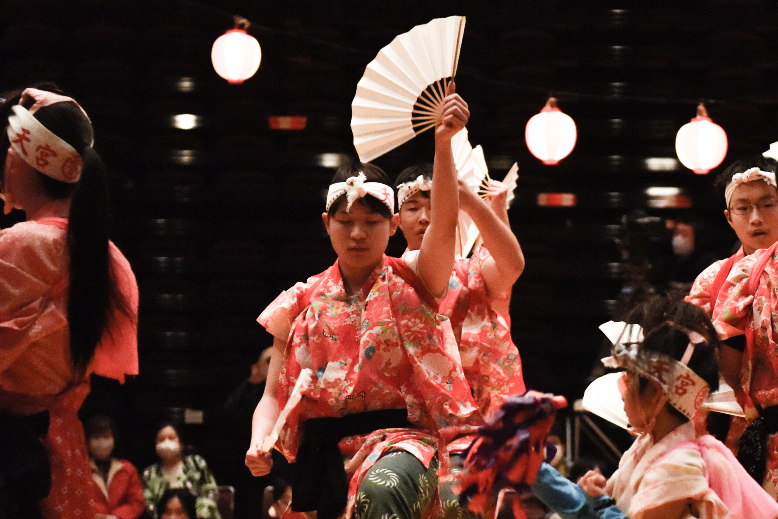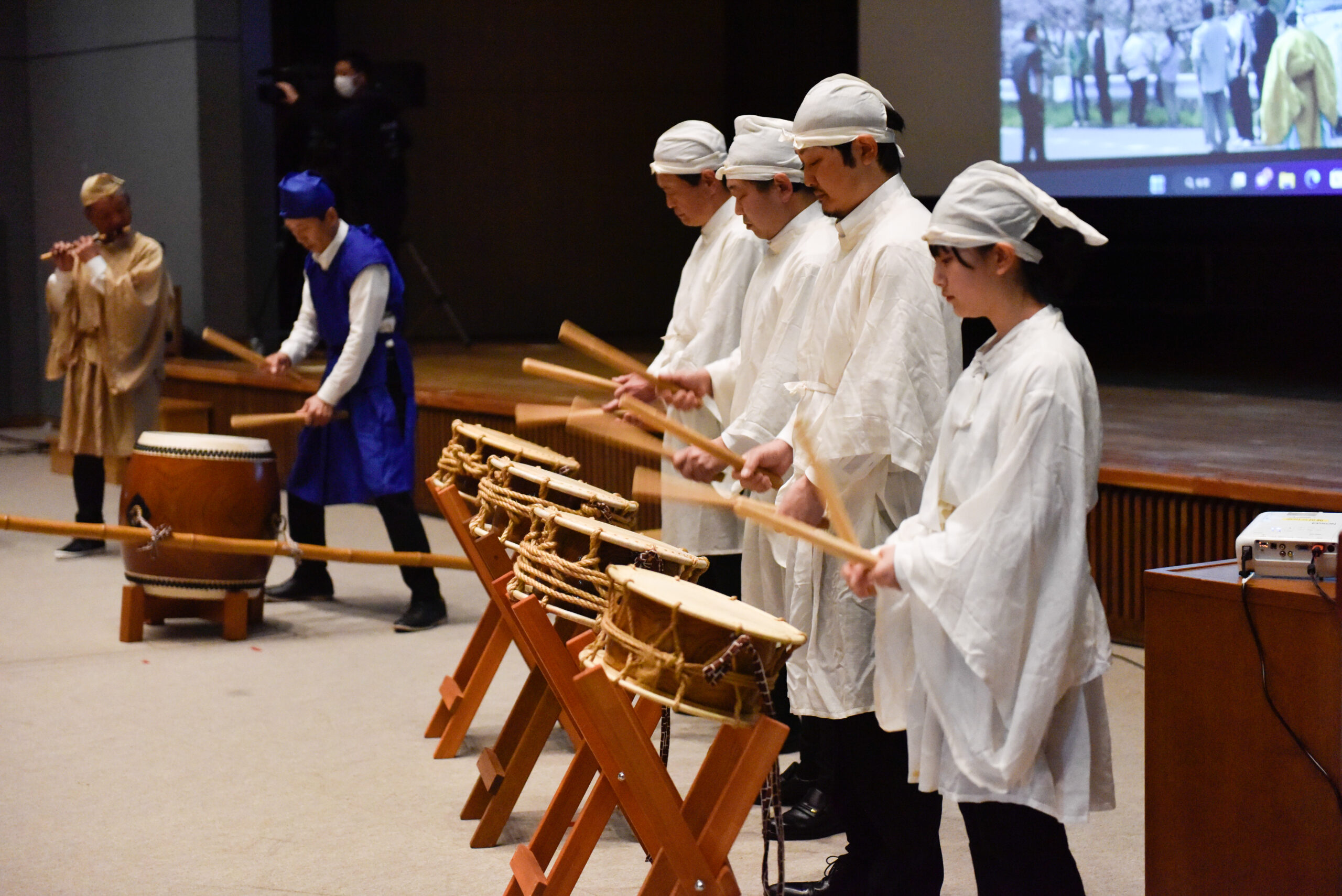動画を流し、実際のお祭りの様子がわかるような雰囲気の中、演奏がおこなわれました。