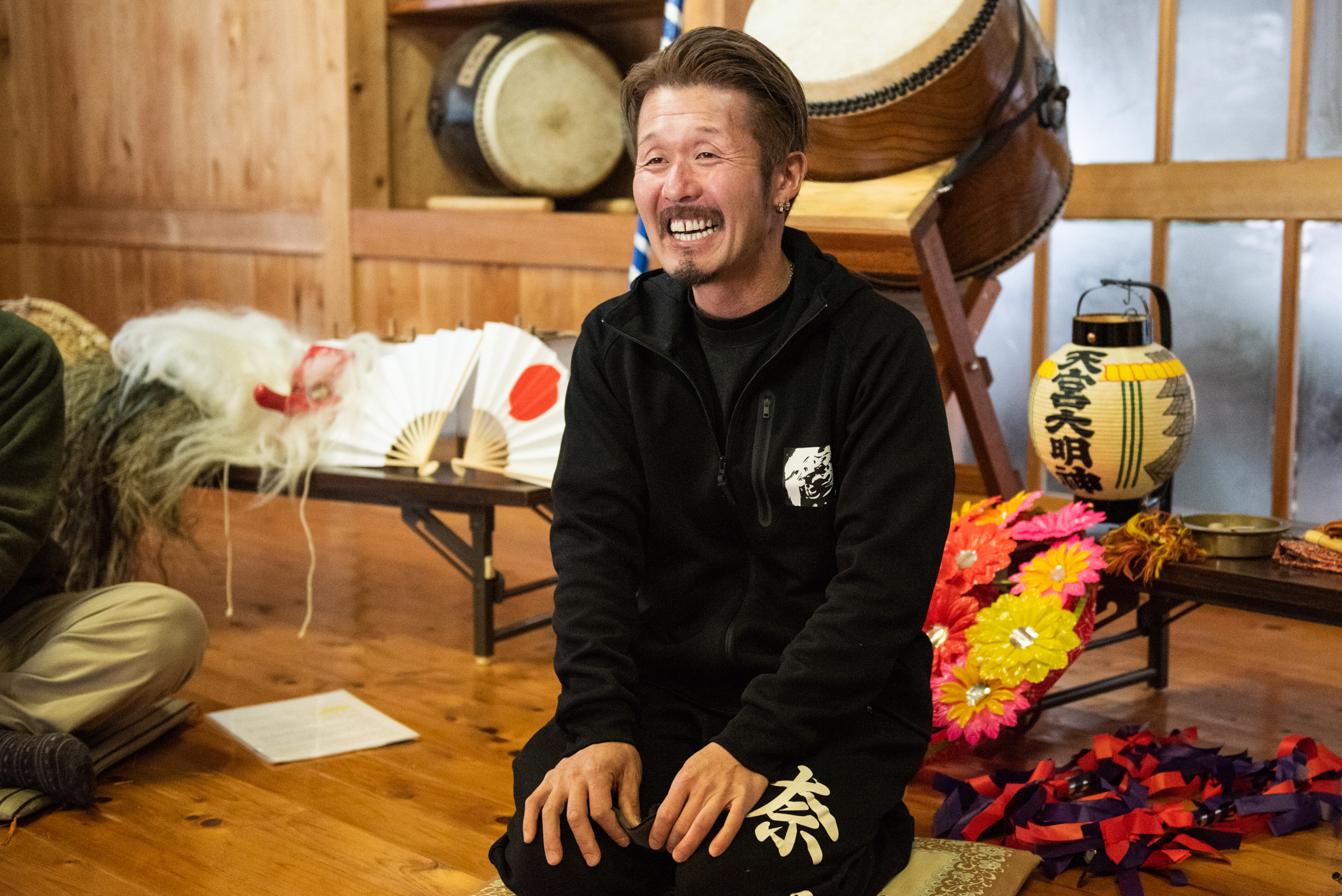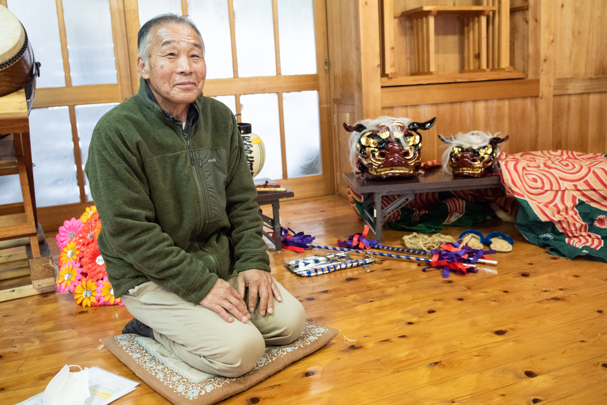 基本的には集落に残っている人はやってほしいということで、自然と獅子舞をやる流れになっています。踊りは30代までやって、それ以降は笛や太鼓などの楽器に移ります。ただ徐々に担い手の年齢も上がっていますね。人がいればなんとか続けられるので、とにかく担い手を確保したいですね。若い人たちが色々担い手確保のために動いてくれているようです。