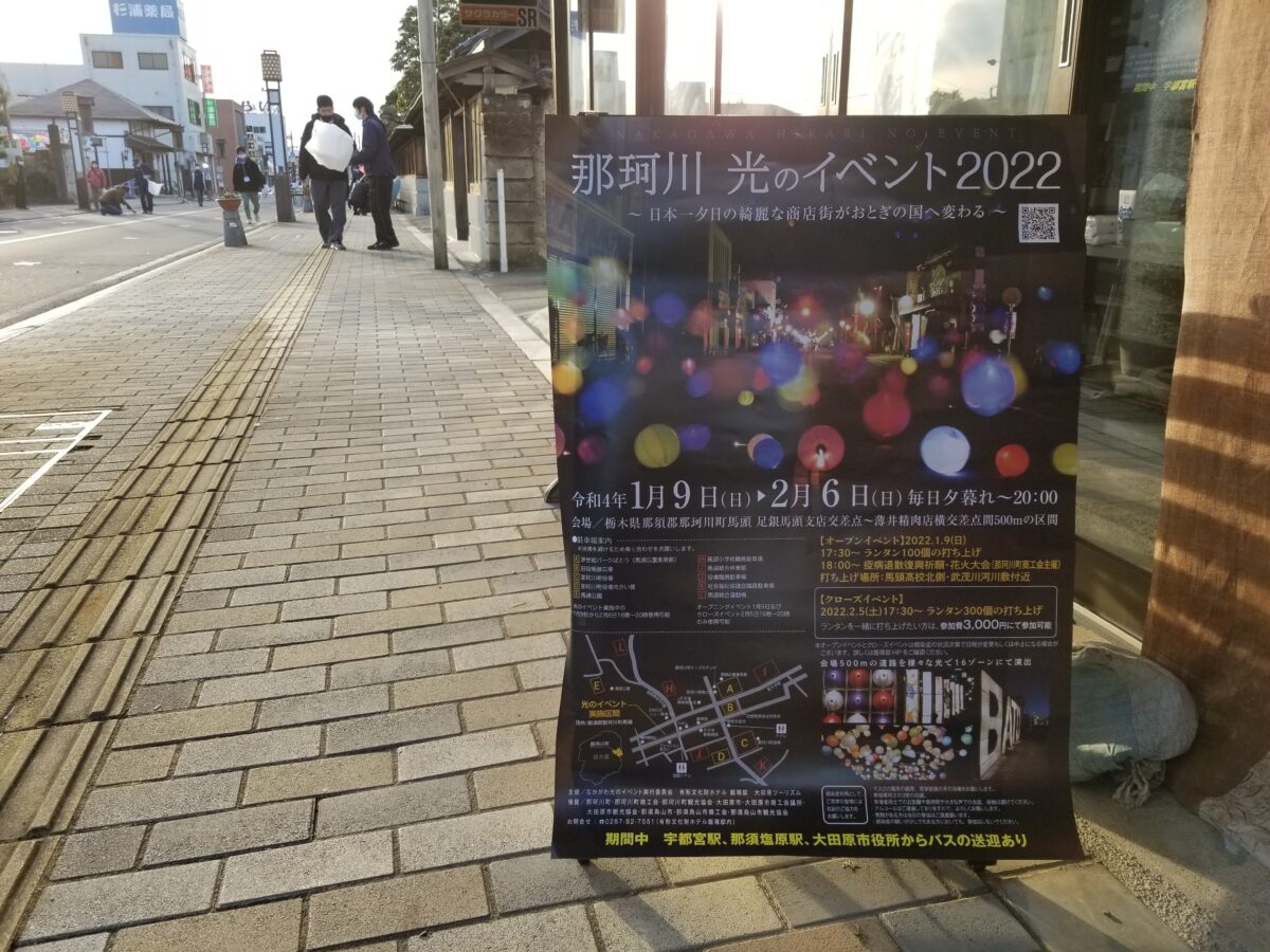 以前、SNSにアップされていた写真を見て興味があった那珂川 光のイベント。今年も開催されることを知り、花火の打ち上げがある1月9日のオープニングイベントにあわせて行ってきました。