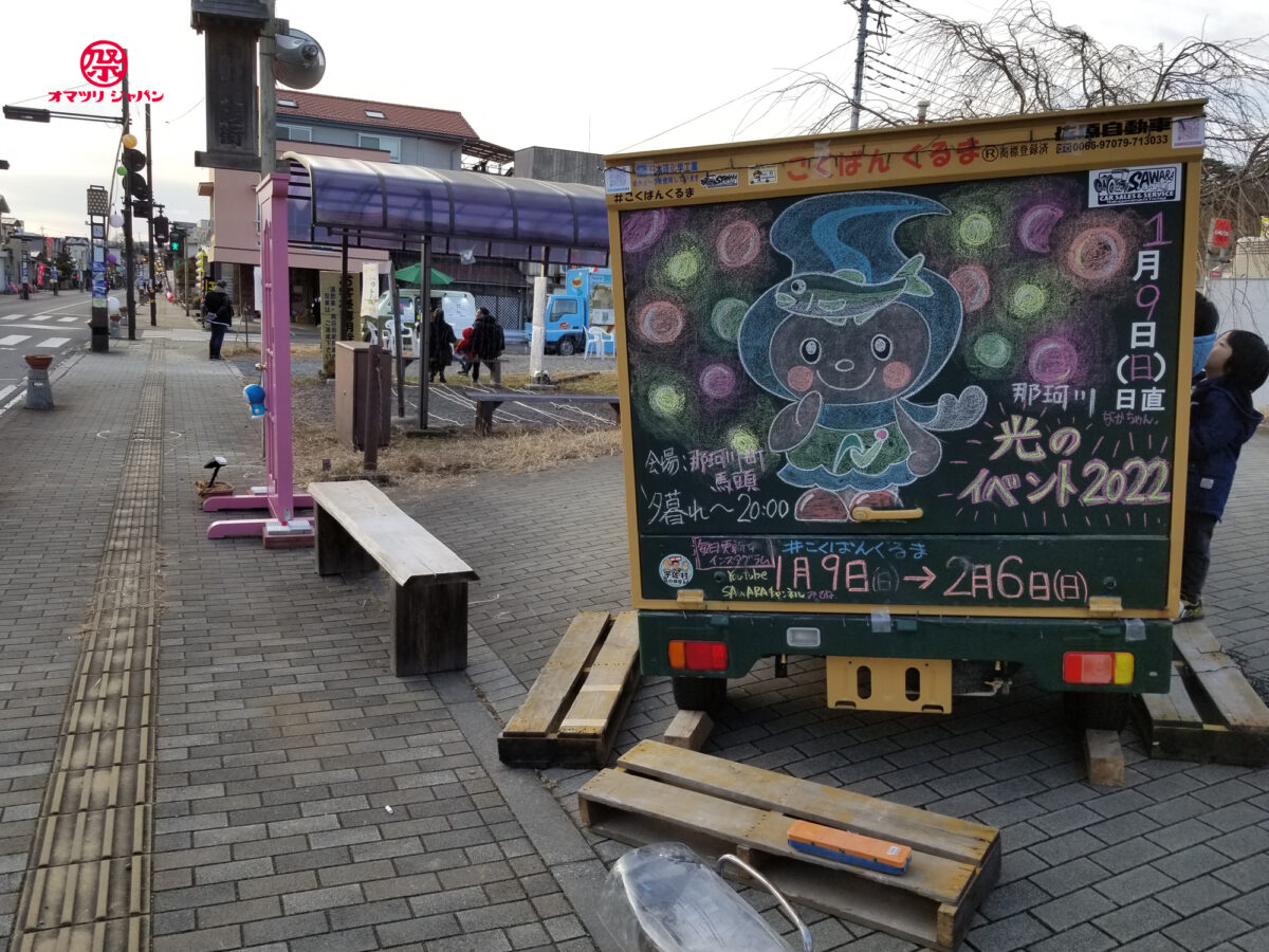 期間中は毎日、宇都宮駅・那須塩原駅・大田原市役所から「光のイベント」にラッピングした無料送迎バスもあるので、興味がある方は是非お越しください。なお、シャトルバス1台には、平日27名・土日は48名までしか乗車できないので注意が必要です。